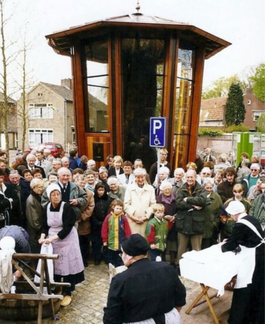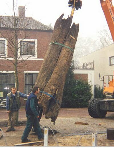 Deze vitrine in het centrum van Gilze toont een bijna 1000 jaar oude boomput. Deze houten waterput maakte men van twee halve, uitgeholde eiken. Deze boomput werd bij archeologische opgravingen in 1994 ontdekt in de oude pastorietuin in Gilze.
