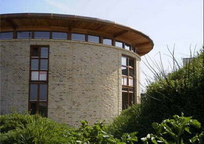 Ronde woning met kleine binnenplaats voor extra licht- en luchttoetreding.
