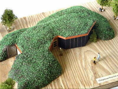 Ontwerp voor de huisvesting van de ponyclub. Bijzonder is de inbedding in het landschap. Dit zorgt niet alleen voor meer ruimte voor de natuur maar ook voor een zeer goede warmte-isolatie van het gebouw.
