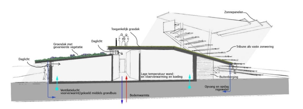 Inzending prijsvraag voor ontwerp nieuw clubhuis voor voetbalvereniging Gilze. Uitgangspunt was de connectie met het landschap, alzijdigheid en integrale duurzaamheid.