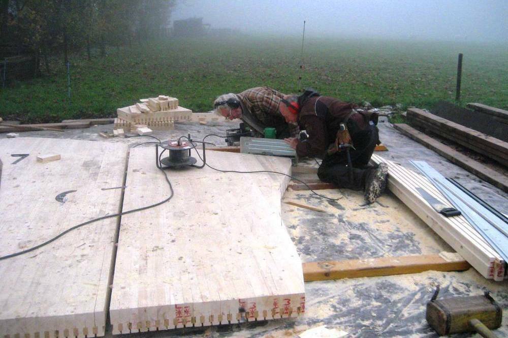 De massieve vloerplaat is voorzien van randbalk opgebouwd uit drie lagen multiplex. Deze multiplex lagen zijn bevestigd in de kopse kant van iedere balk van de vloerplaat. De stabiliteit wordt verzorgt door houtskeletbouw-elementen die aan deze rand gekoppeld zijn. De grote hoeveelheid hout heeft een positieve invloed op de gezondheid van het binnenklimaat.