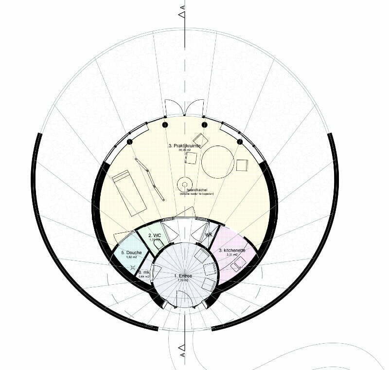 Ontwerp voor een praktijkruimte. Uitgangspunt is dat de architectuur kan bijdragen aan genezing en gezondheid. De architectuur bevorderd het gevoel van geborgenheid en bescherming hetgeen de behandeling ten goede komt. Het ontwerp in geschikt voor zowel individuele behandelingen als voor groepsworkshops. Ecologisch bouwen speelt een belangrijk rol in het ontwerp.