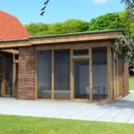 Het bestaande woonhuis is uitgebreid met een extra wooneenheid met o.a. een slaapvertrek en badkamer en is voorzien van een eigen entree. De grote glazen gevel biedt naar twee kanten uitzicht over de tuin.