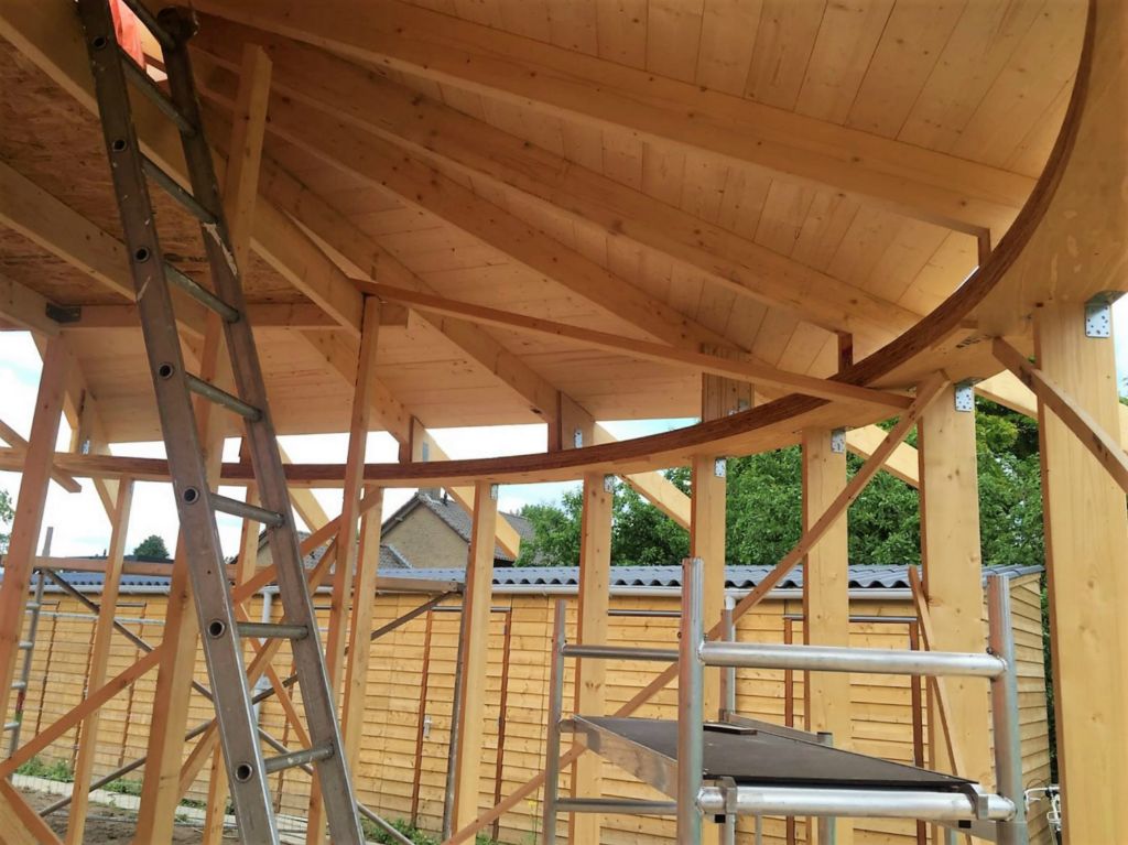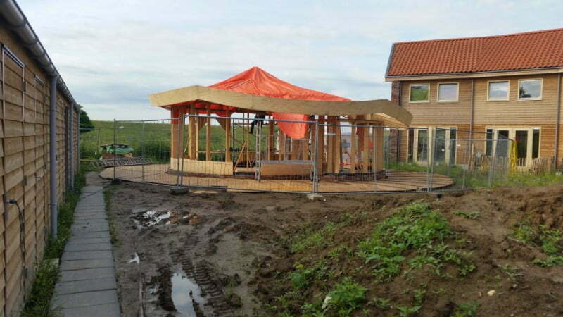 De begane grondvloer bestaat uit een houtenvloer die geïsoleerd is met schelpen. De wanden bestaan uit een houten skelet geïsoleerd met hennepbeton en afgewerkt met inlands houten delen. Het dak bestaat uit houten gordingen met hennepisolatiedekens en is afgewerkt met een sedumdak. Ten slotte is het gebouw zelfvoorzienend d.m.v. zonnecellen en hoge Rc waardes.