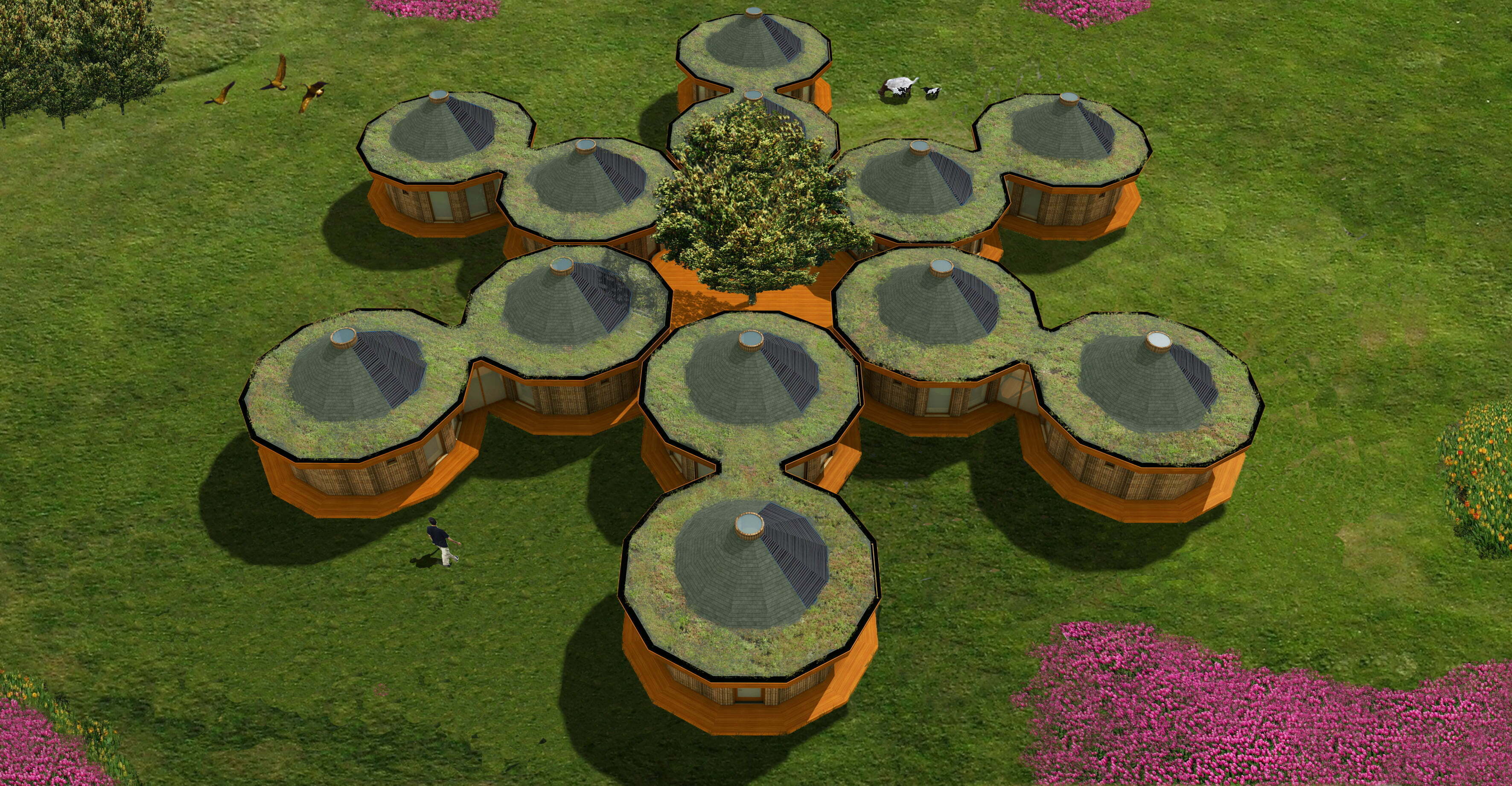 Het Tiny house heeft een bruto vloeroppervlak van 35m2 en bestaat uit ecologische materialen. De plattegrond vormt een 12 hoek, hierdoor kan er eenvoudig gekoppeld worden met andere Tiny houses zonder dat er afbreuk gedaan wordt aan de vorm. Het Tiny house heeft een kleine entree, installatieruimte, badkamer en leefruimte. Daarnaast is het Tiny house zo ontworpen dat er boven de entree, badkamer en installatieruimte een vliering ontstaat. Er zijn verschillende groottes mogelijk. Daarnaast is er een verplaatsbare variant.