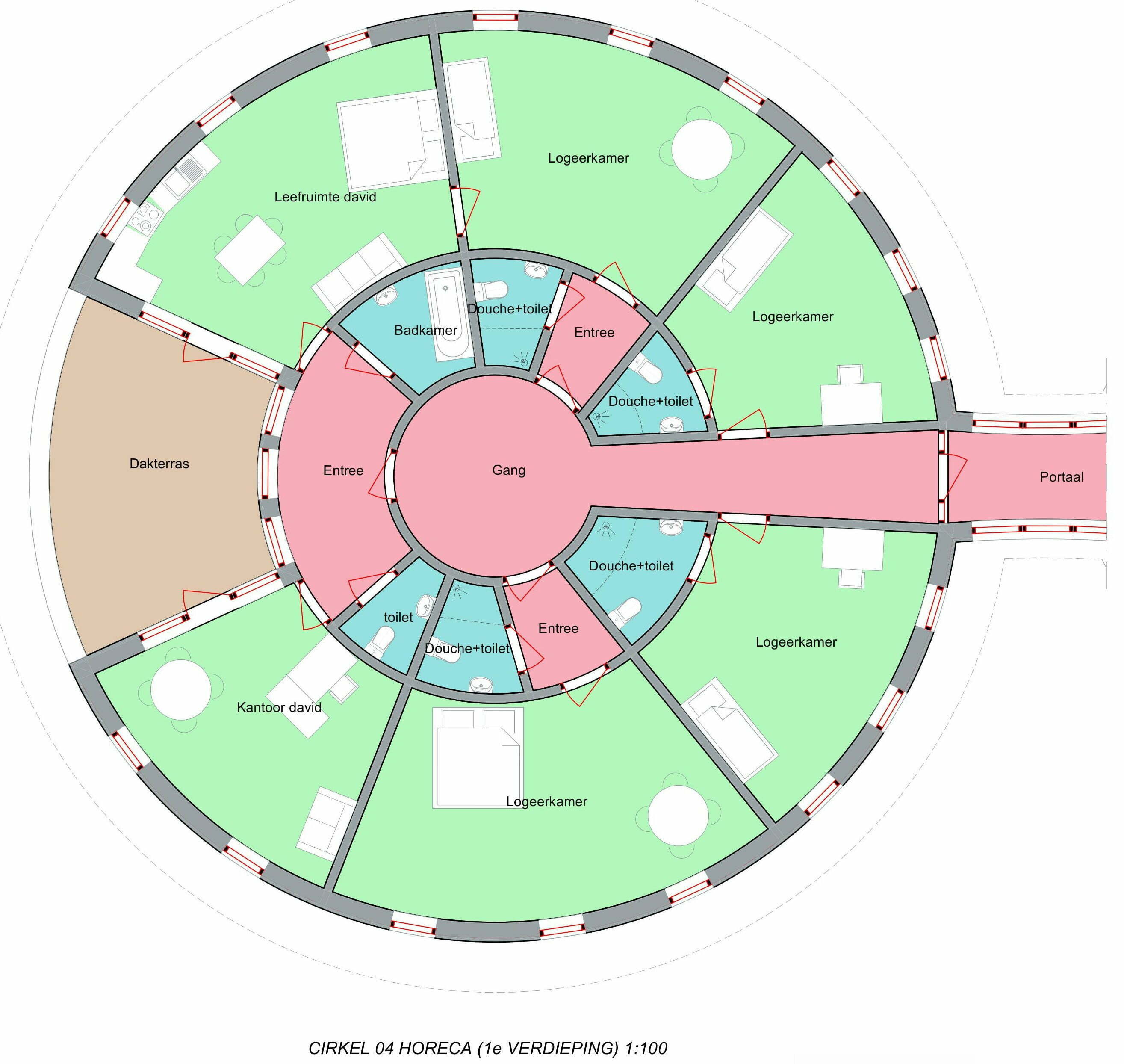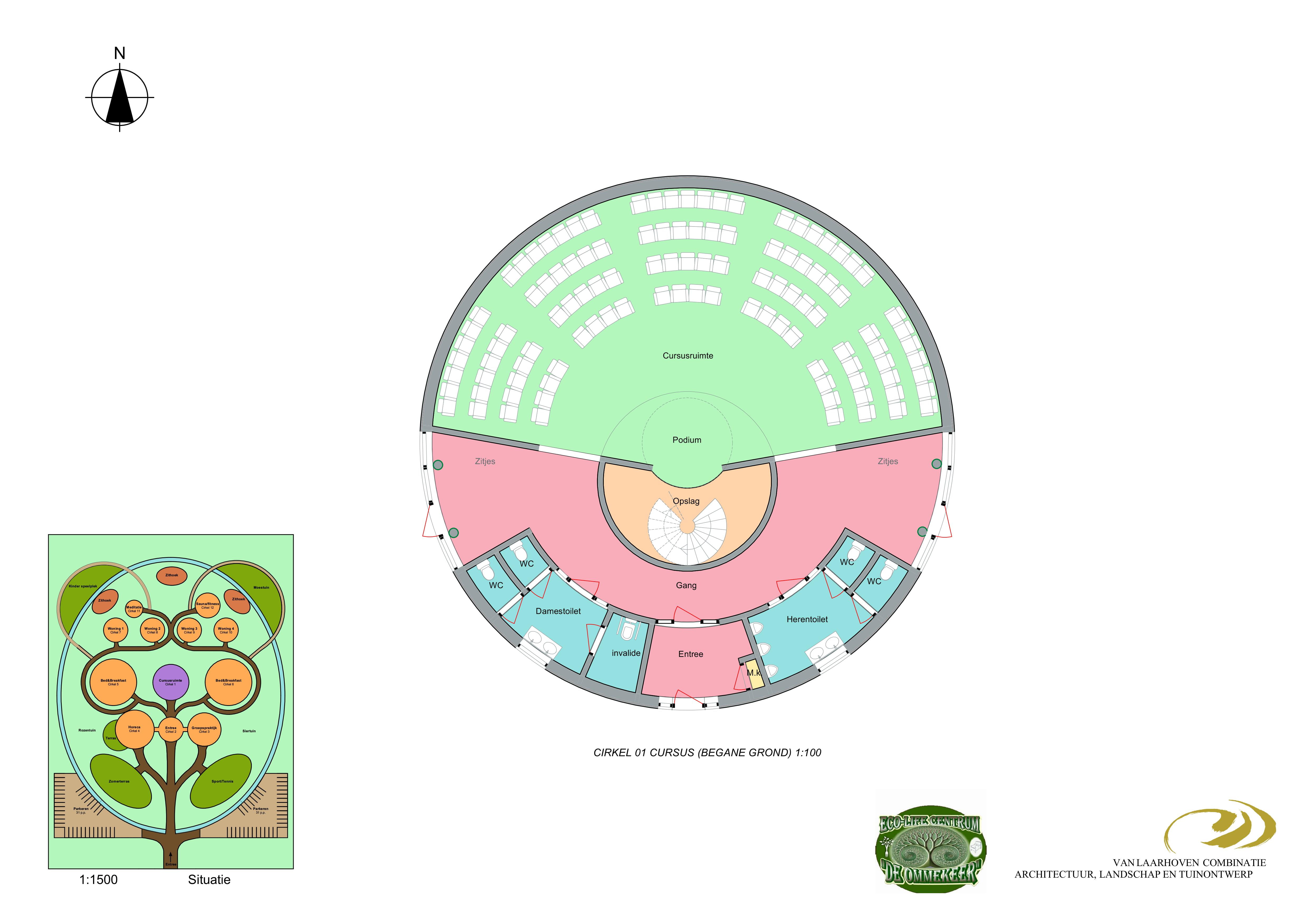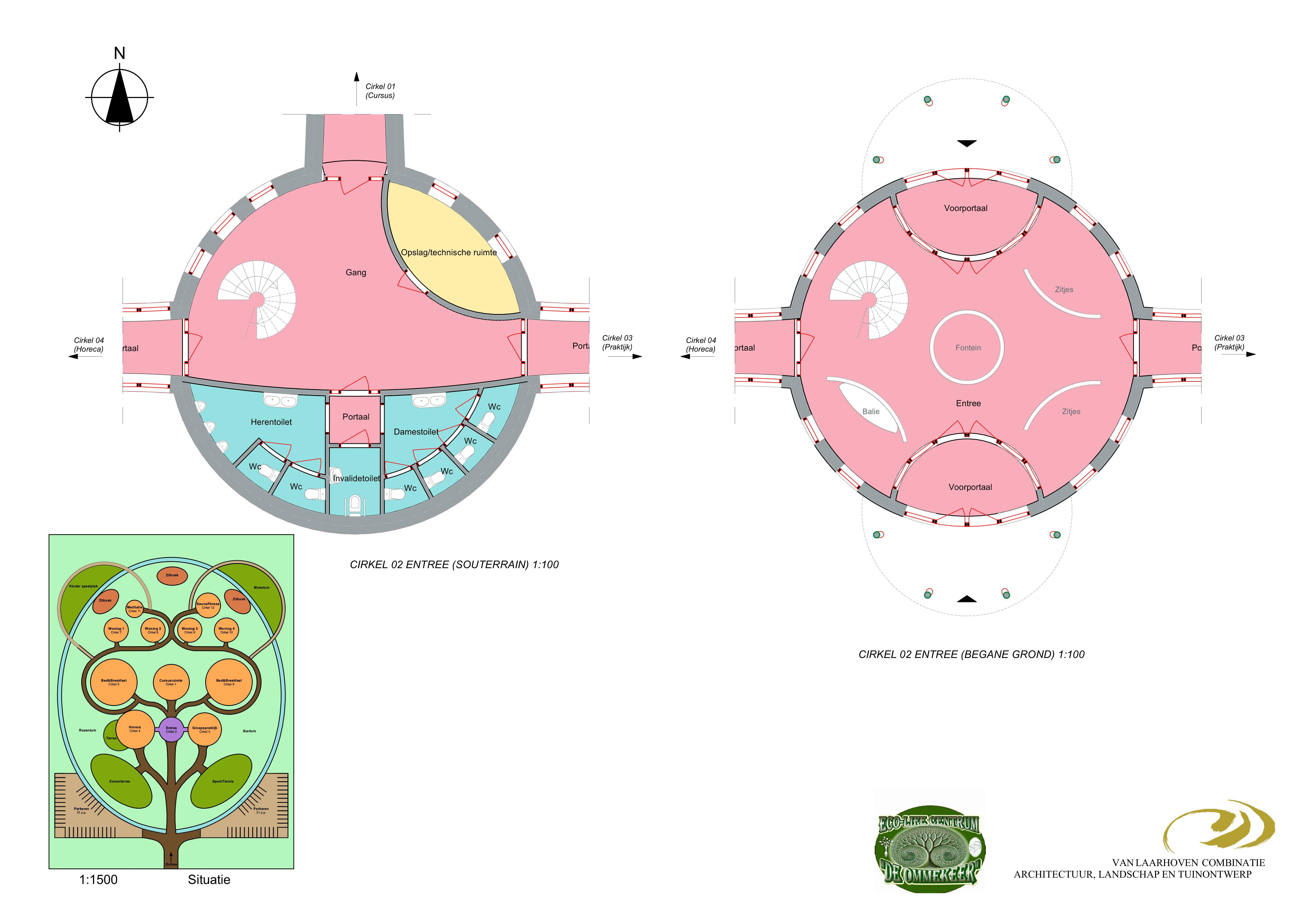 Het gezondheidscentrum bestaat uit 12 cirkels met verschillende gebruiksfuncties: een bed en bio-Breakfast met een complementaire therapeutische groepspraktijk, bio & etherische shop, cursus - Lezingen - workshop en concertzaal. En ten slotte een himalaya Infrarood Sauna, Stilte, Meditatie, restaurant, woningen en een fitnessruimte. Dit alles in een puur natuurgebied met tennisbanen, Golfvelden, Kinderspeelplek en Zonne terrassen. Om te kunnen “Her-Bronnen aan de Oer-Bronnen van het LEVEN” Dit gezondheidscentrum wordt volledig ecologische en zelfvoorzienend uitgevoerd. Hierbij zijn materialen als kalkhennep, schelpen, groene daken, hout, etc. zeer geschikt.