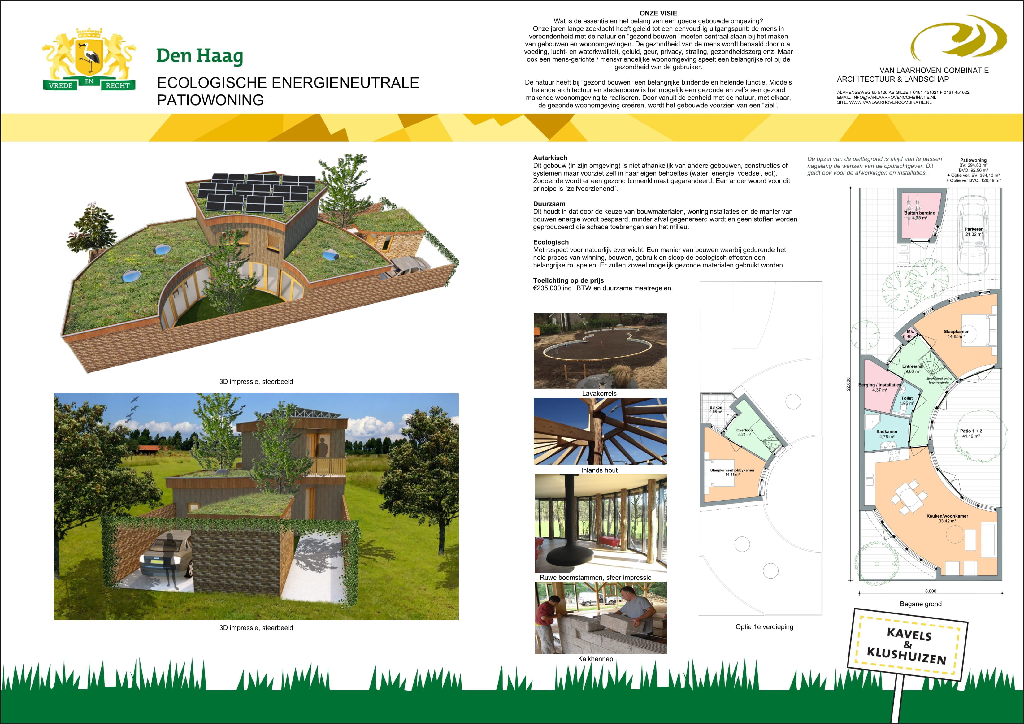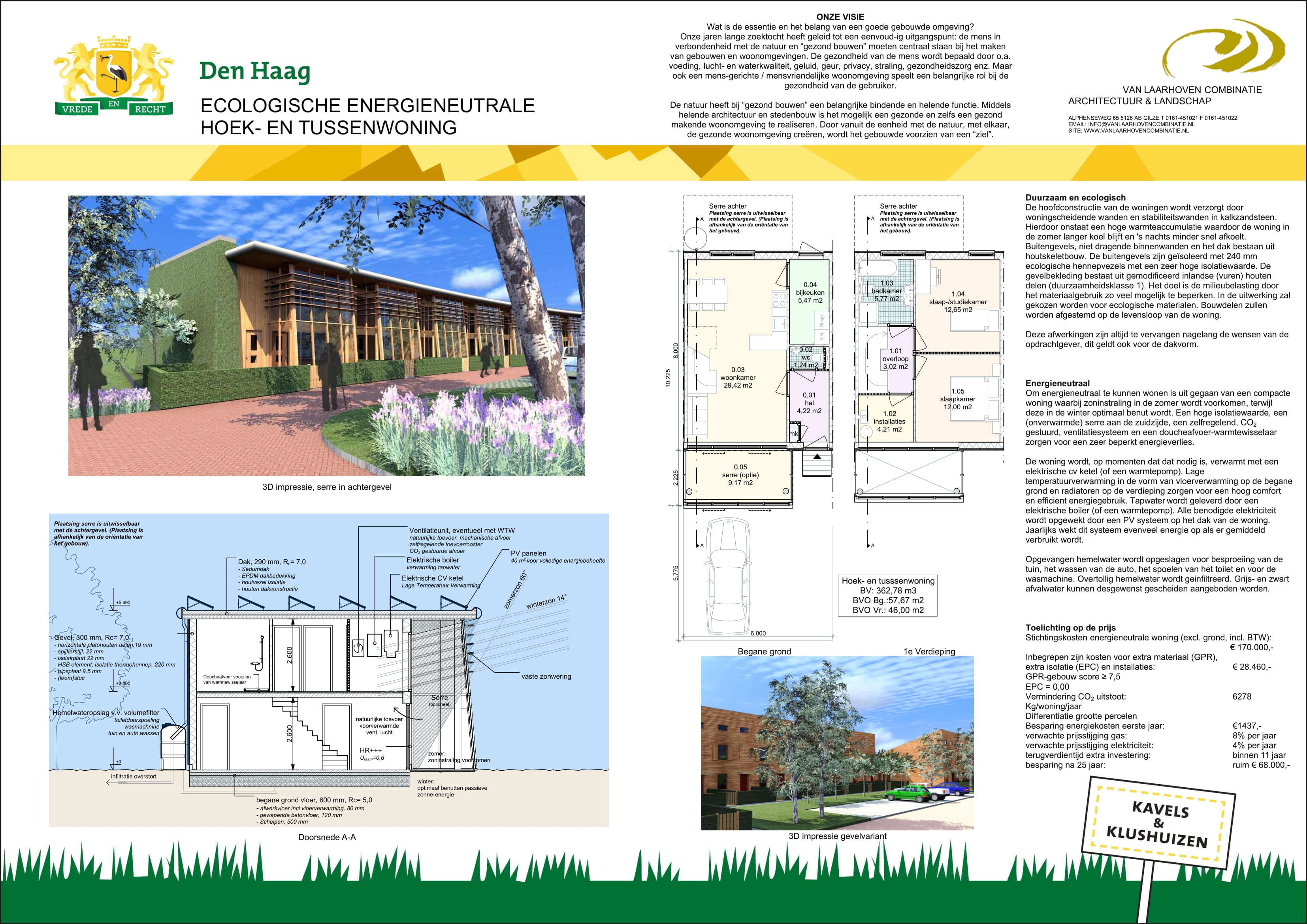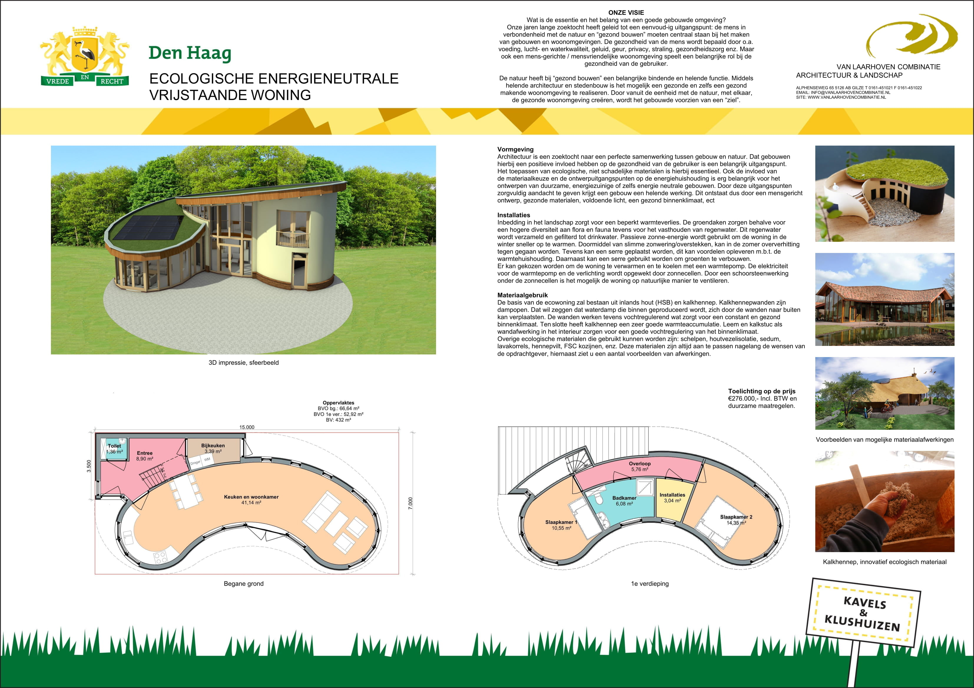 55 zelfbouwkavels voor verschillende woningtypes: vrijstaande woningen aan het water, geschakelde woningen en patiowoningen op het duin. 2 appartementengebouwen met in totaal 66 huurwoningen die door een corporatie worden gebouwd. Van Laarhoven heeft 3 verschillende ontwerpen gemaakt.