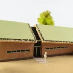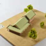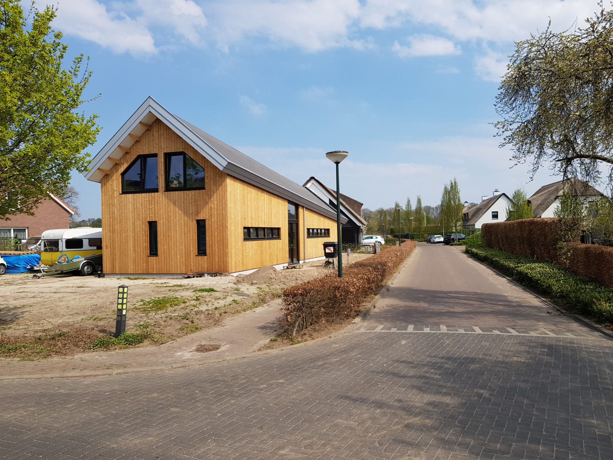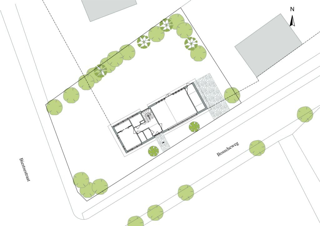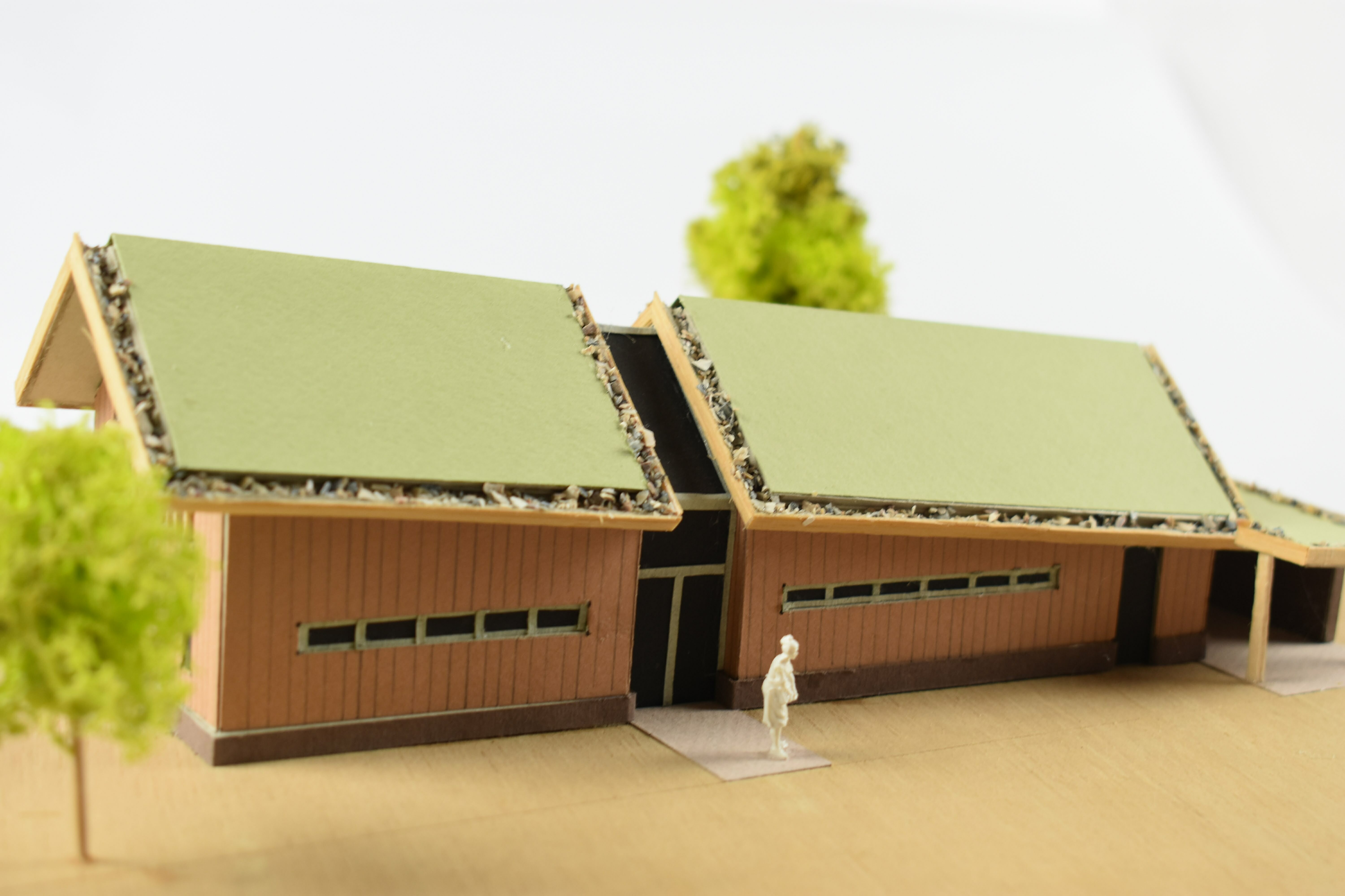 Een ecologische woning in een ander jasje: 'een ecologische schuurwoning'. Eenvoud van vorm, materialen en detaillering zijn belangrijke uitgangspunten bij deze ontwerpvraag. Door grote verschillen in het programma van de begane grond en 1e verdieping is het idee ontstaan om de kap schuin te laten lopen, hierdoor worden m3 bespaard. De wanden bestaan uit HSB met houtvezelisolatie en worden afgewerkt met traditionele houten delen. Het dak wordt tevens geïsoleerd met houtvezelisolatie, het kaphout komt in het zicht en de toplaag bestaat uit sedum.