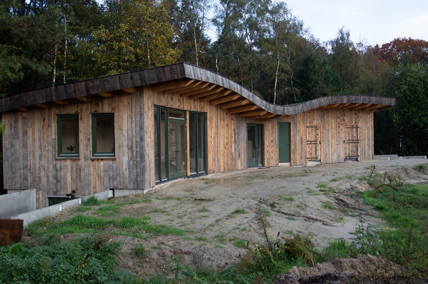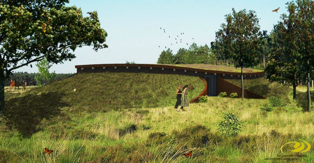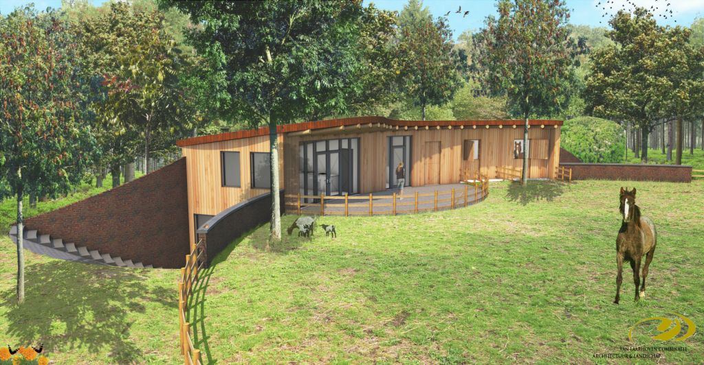 De vervallen bestaande vakantiewoning met paardenstaal wordt afgebroken. Hier komt voor in de plaats een landschapsgerichte vakantiewoning met paardenstal. De woning wordt omringd door groene aardwallen, optisch gezien lopen deze in een golvende beweging over in het dakvlak. Hierdoor ontstaat er een perfecte inbedding van de woning in het landschap. De woning is gericht naar het fraaie open landschap, waardoor er een relatie ontstaat met de paarden.