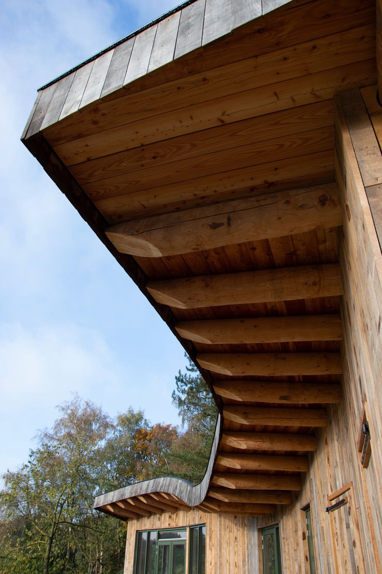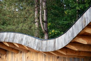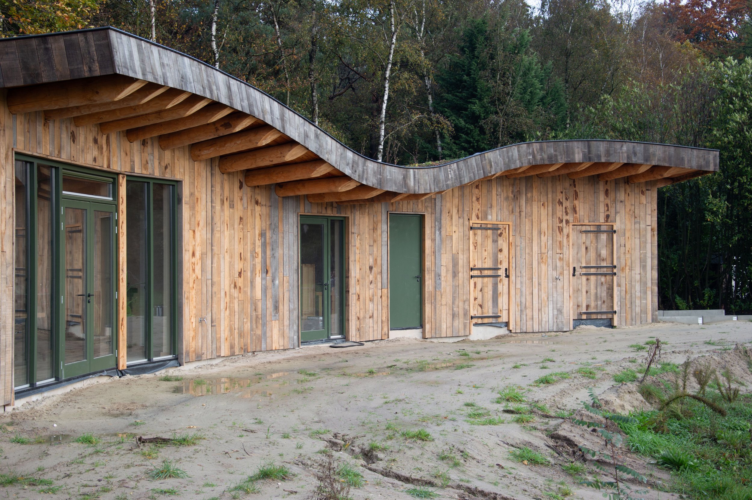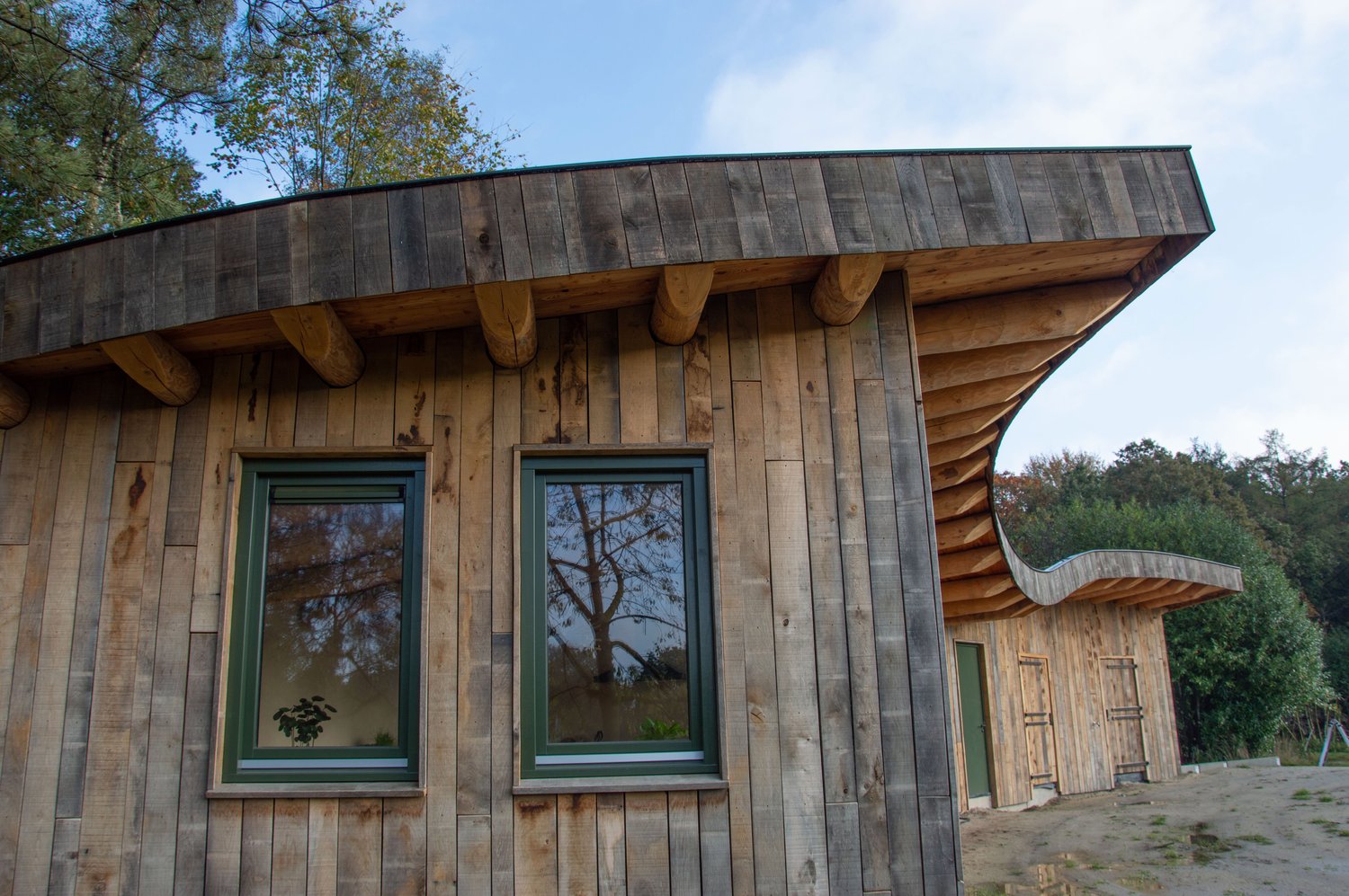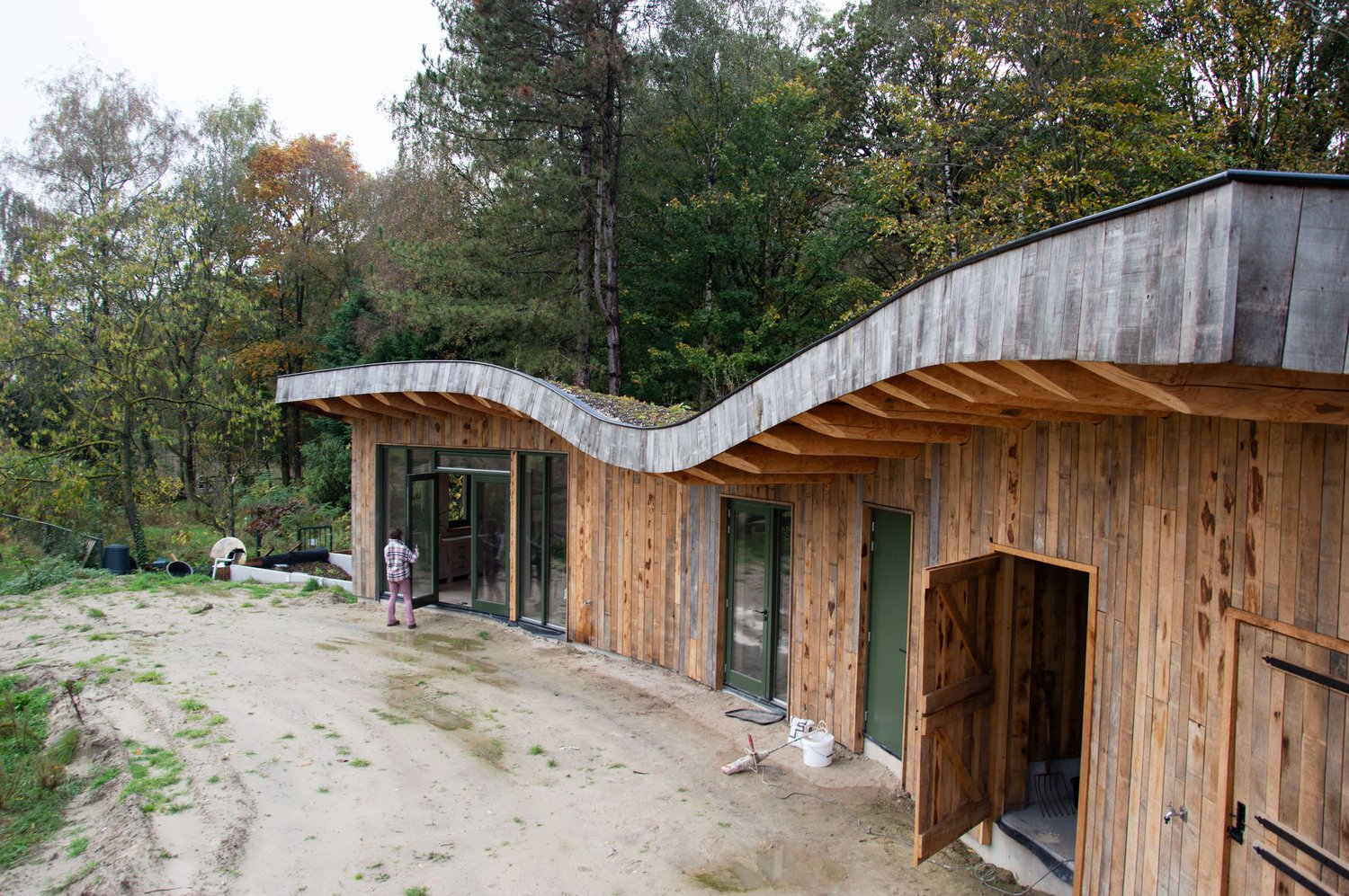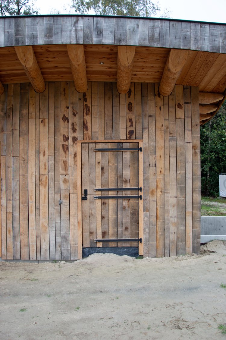 Doordat de woning gebogen is, ontstaat er een beschutten binnenplaats. Door veel glas en natuurlijke materialen toe te passen wordt de natuur als het ware naar binnen gehaald en ontstaat er een uiterst gezonde woonomgeving. Deze biophilic omgeving zorgt voor een significante vermindering van de mentale belasting en maakt mensen gelukkiger en gezonder. Ideaal dus voor een vakantiewoning. Deze woning is uitgevoerd door OPEN bouw en ontwerp.