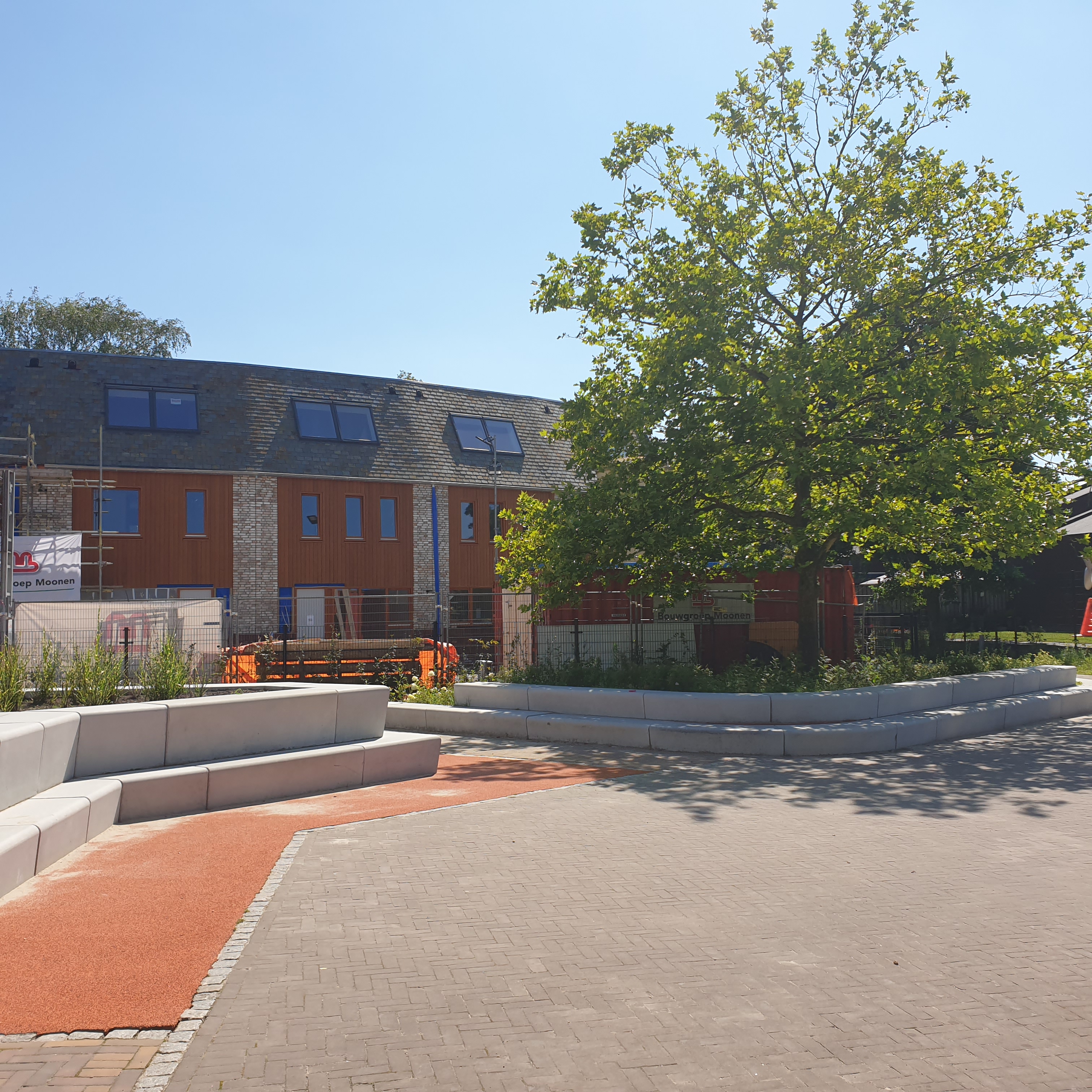 De 16 woningen vormen een belangrijke schakel tussen de vernieuwde Alphenseweg, de heuvel, het Nonnenpad en de nieuwe basisschool. Het bouwlint vanuit de Alphensweg wordt opnieuw verbonden. Door de drie elementen, het Nonnenpad, het bouwblok en het parkeren een buiging te geven ontstaat er een verfraaiing met een geheel eigen karakter. Dit geeft een verbijzondering aan de Alphenseweg, het schoolplein en de woningen. De kwaliteiten van het plan bevinden zich in de grenzen en vlakken. Deze vloeien in elkaar over zodat er ruimtes voor speel-, parkeer-, ontmoet-, en groenfuncties ontstaan. De voortuinen van de woningen zijn bestemd als overgangsgebied naar de straat en het plein. Dit fungeert als een stadstuin. Het bestaande Nonnenpad loopt achter de woningen door en creëert een ‘knip’ in het bouwblok. Deze krijgt een extra accent door een ruwe gemetselde tuinmuur met hergebruikte straatstenen. Deze muur loopt over in de kopwoningen. Het pad geeft ook toegang tot de tuinen en de buitenbergingen van de woningen. De achtertuinen zijn gericht op het zuiden en westen, terwijl de voorkant gericht is richting het noorden en oosten. Parkeren vindt plaats tussen de woningen en het schoolplein. .
