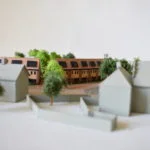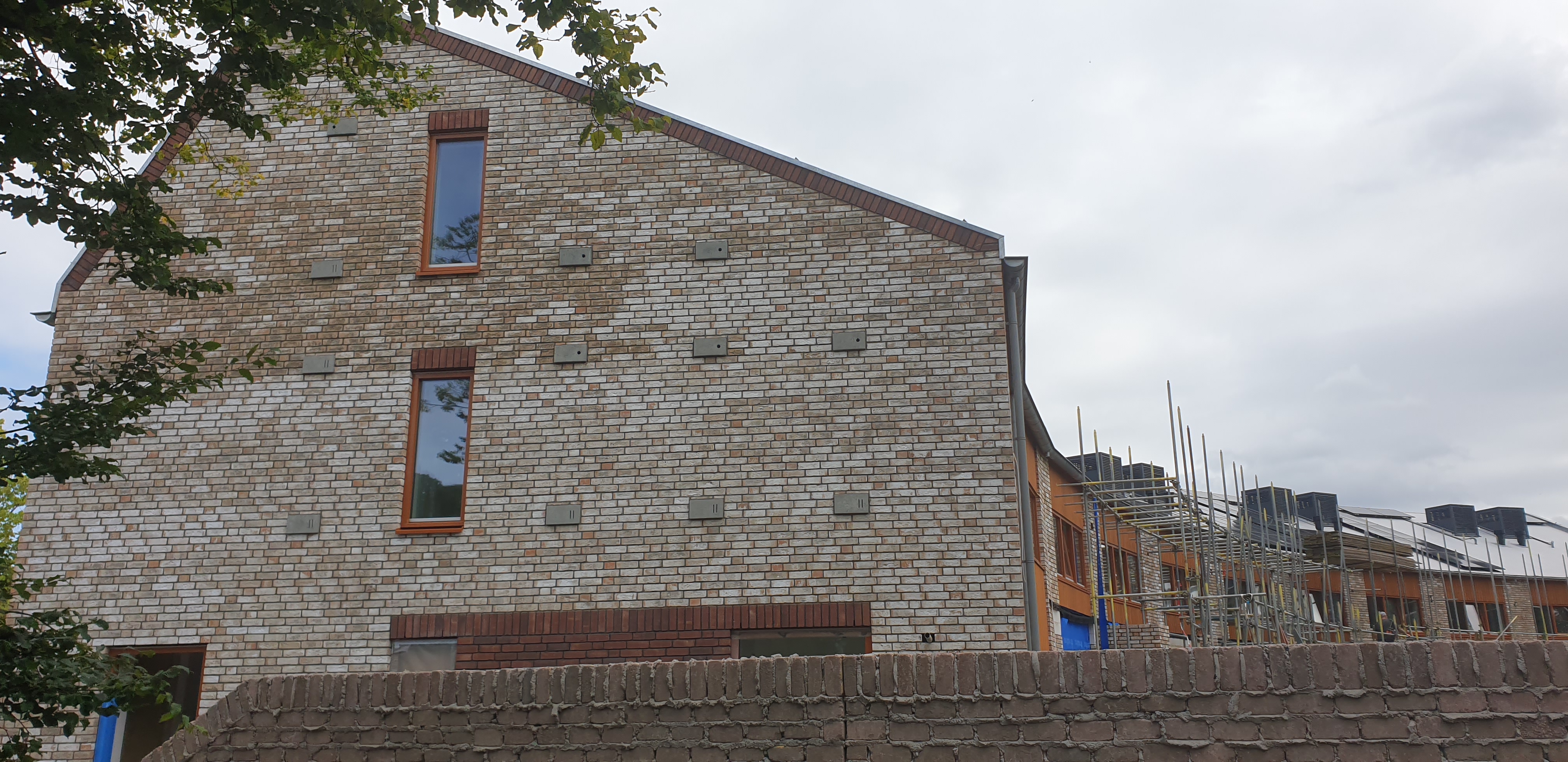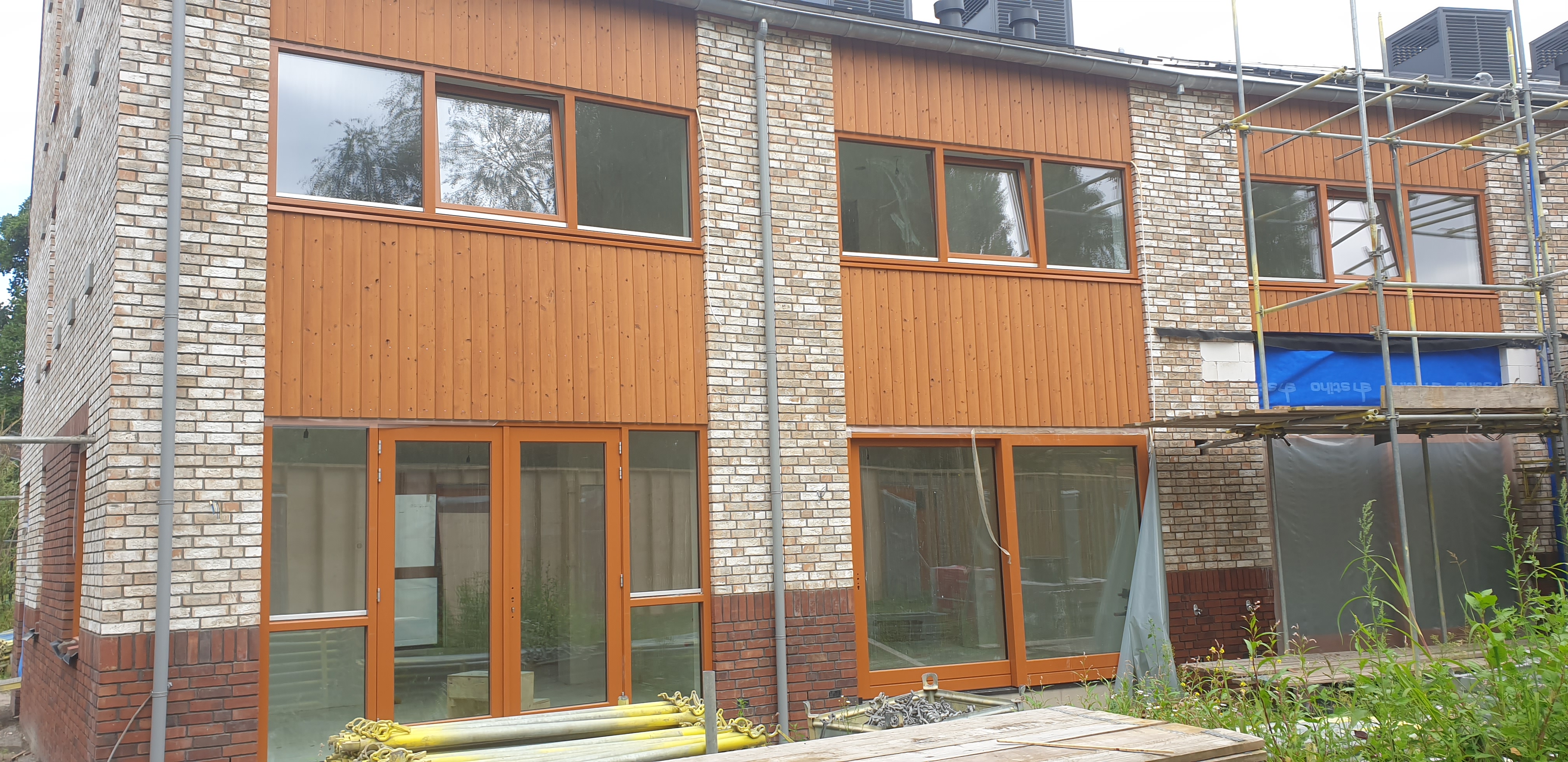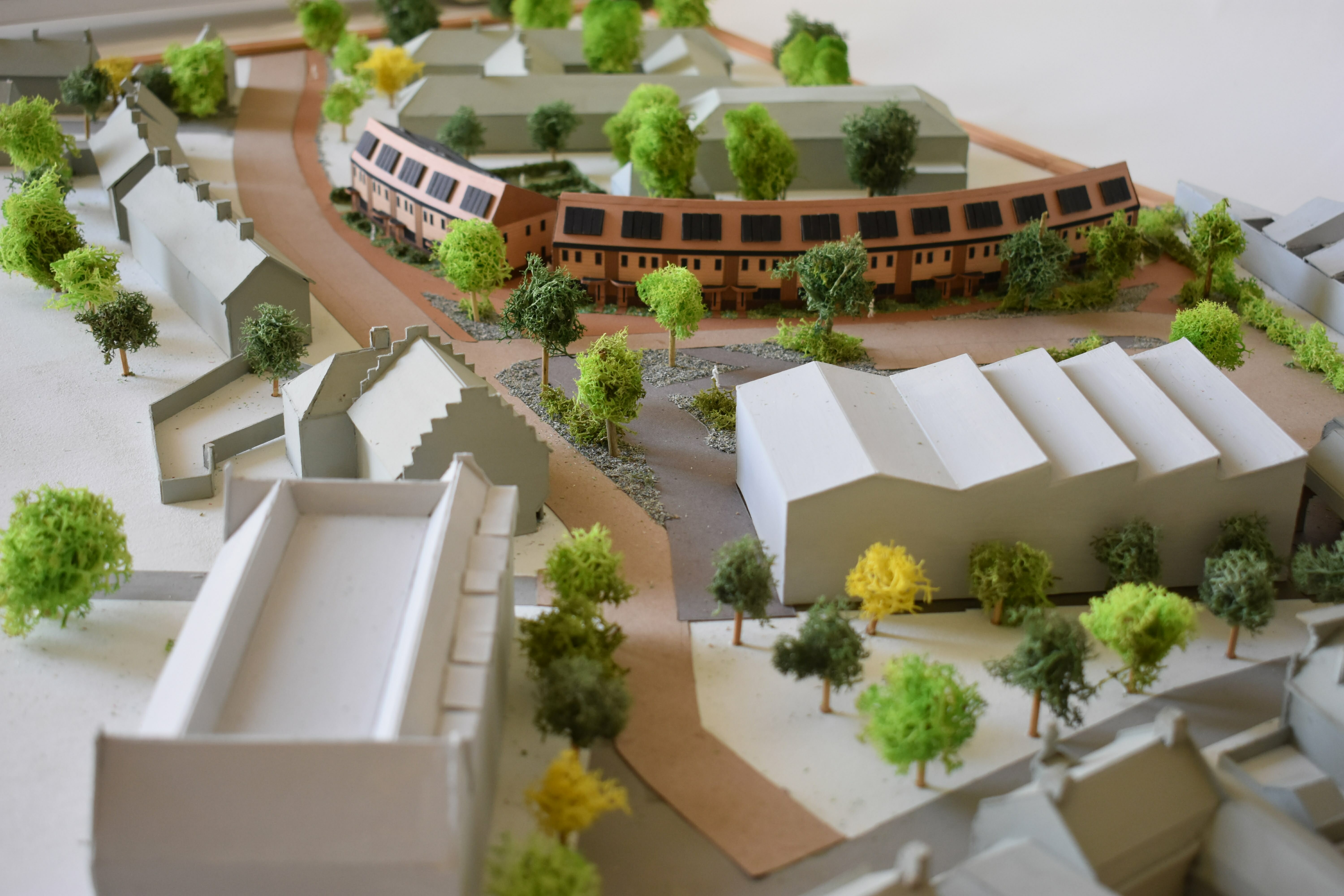 De woningen hebben smalle beukmaat en zijn diep. Hierdoor heeft de plattegrond altijd twee sferen, gericht naar activiteit (het schoolplein) of de rust (de tuin). De 16 woningen zijn uitermate geschikt om te fungeren als familiewoningen met karakter. Naast wonen moet er ruimte zijn voor werken, spelen en logeren. Een woning van 3 lagen heeft per verdieping een andere functie. Wonen op de begane grond aan de tuin, slapen op de meer gesloten tweede verdieping en logeren, spelen of werken op de flexibele 2e verdieping. De 2e verdieping bestaat uit een asymmetrische kap. Hierdoor ontstaat er veel dakoppervlak op het zuiden, dit zal gevuld worden met zonnepanelen. Op de noordzijde komt een stijl dakvlak, hieronder is de flexibele ruimte gesitueerd met veel daglicht. De voorzijde van de woning heeft kleine ramen, enerzijds voor het geluid van het schoolplein, anderzijds voor het verlies aan warmte op de noordzijde. De zuidzijde heeft daarentegen veel glas zodat de warmte naar binnenkomt. De entree van de woning krijgt een extra accent door de luifel boven de voordeur. Deze zorgt voor het ‘droog binnen komen’. Ten slotte is de voordeur een boerendeur. Deze deur heeft 2 draaiende delen. Samen met de luifel en het overgangsgebied van de voortuin zorgt dit voor meer sociale verbinding met de buren en buurtgenoten. De harde grens van privé naar publiek wordt versoepeld.