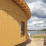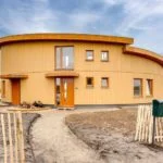 De natuurlijke materialen, kleuren en organische vormgeving benadrukken de zachtheid van het gebouw. In het midden van de woning ontstaat door de vorm een beschutte binnenplaats. Het gebouw is opgetrokken uit HSB met CLT vloeren. De HSB is gevuld met houtvezelisolatie en afgewerkt met gemodificeerd hout.