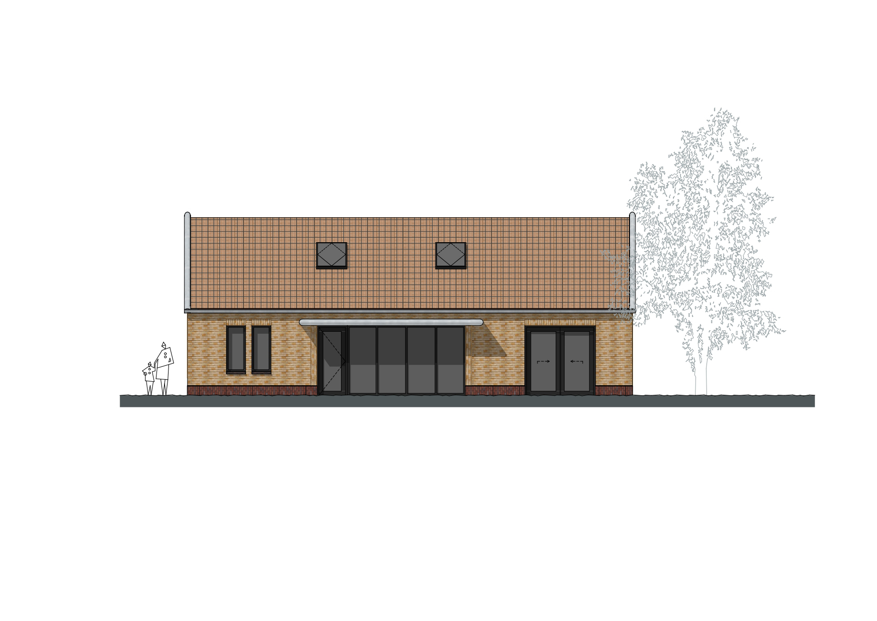 Deze woning bevindt zich aan de oude baan in Hulten. Op het smalle kavel is een asymmetrisch bouwvolume vorm gegeven. Dit volume is smal en lang, door het een bijzondere kap en raamplaatsing te geven ontstaat er een eigentijds ontwerp. Dit wordt versterkt door de strakke detaillering en het materiaalgebruik. Alle gebruiksruimtes bevinden zich op de begane grond, mede hierdoor is de woning levensloopbestendig. Ter plaatse van de toegangen tot de woning zijn er elegante luifels ontworpen. Het metselwerk verbindt de verschillende elementen, zoals de gebouwplint de raampartijen en de luifels. Alles bij elkaar levert dit een elegant en robuust uiterlijk.