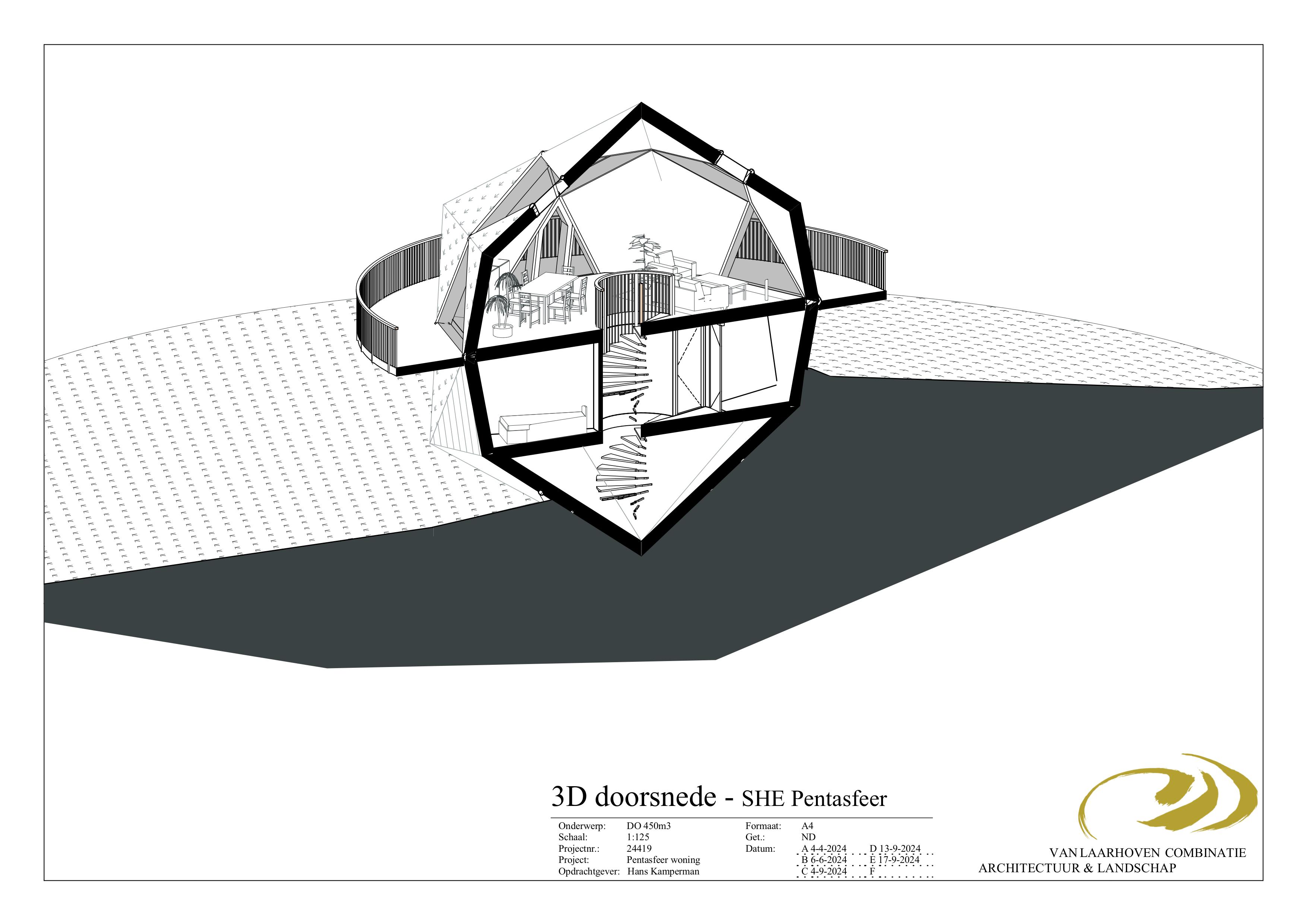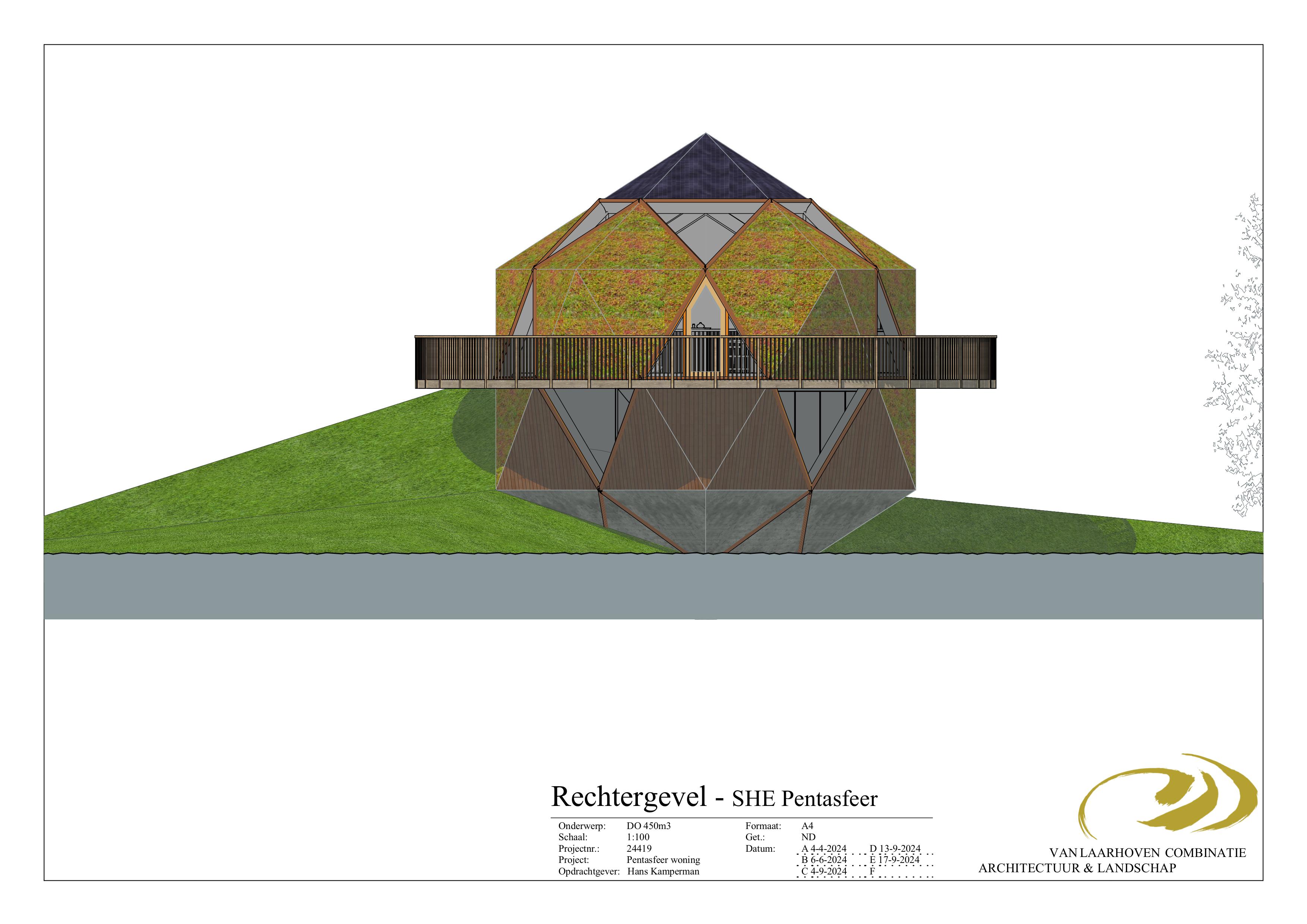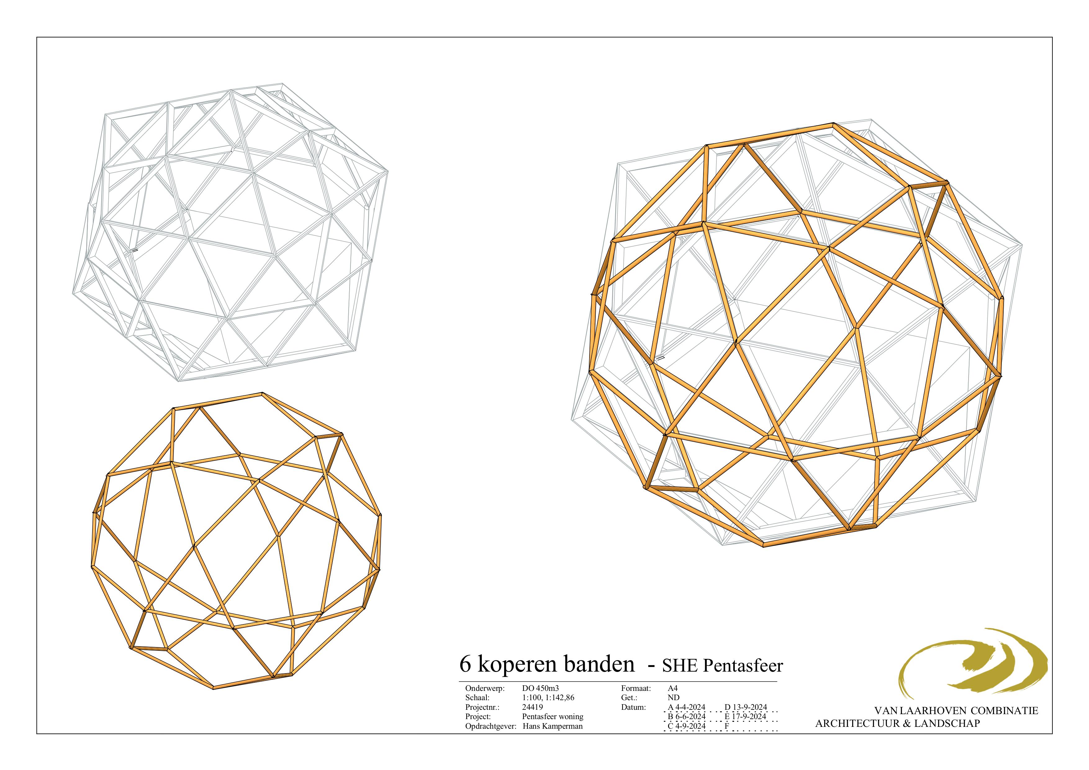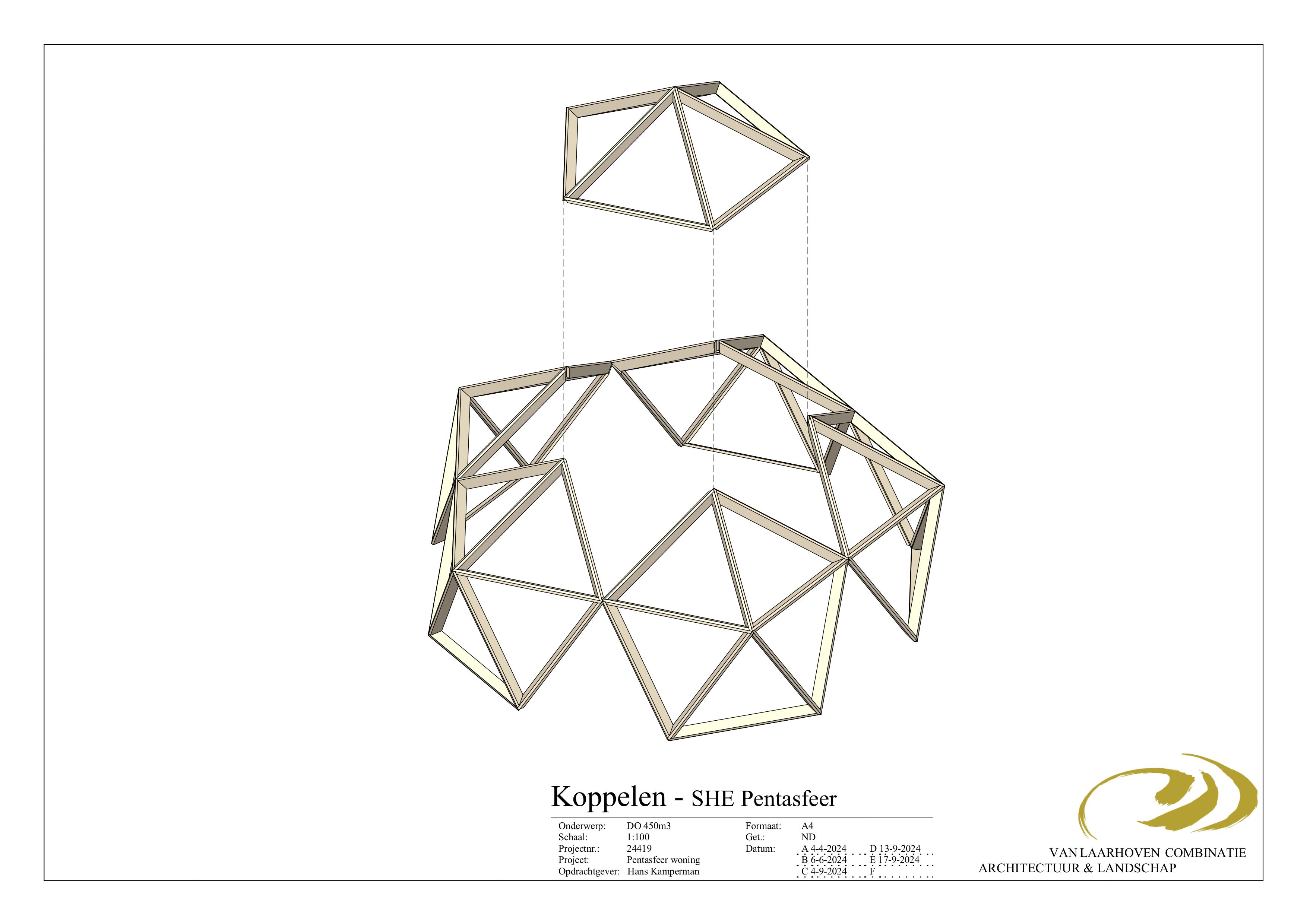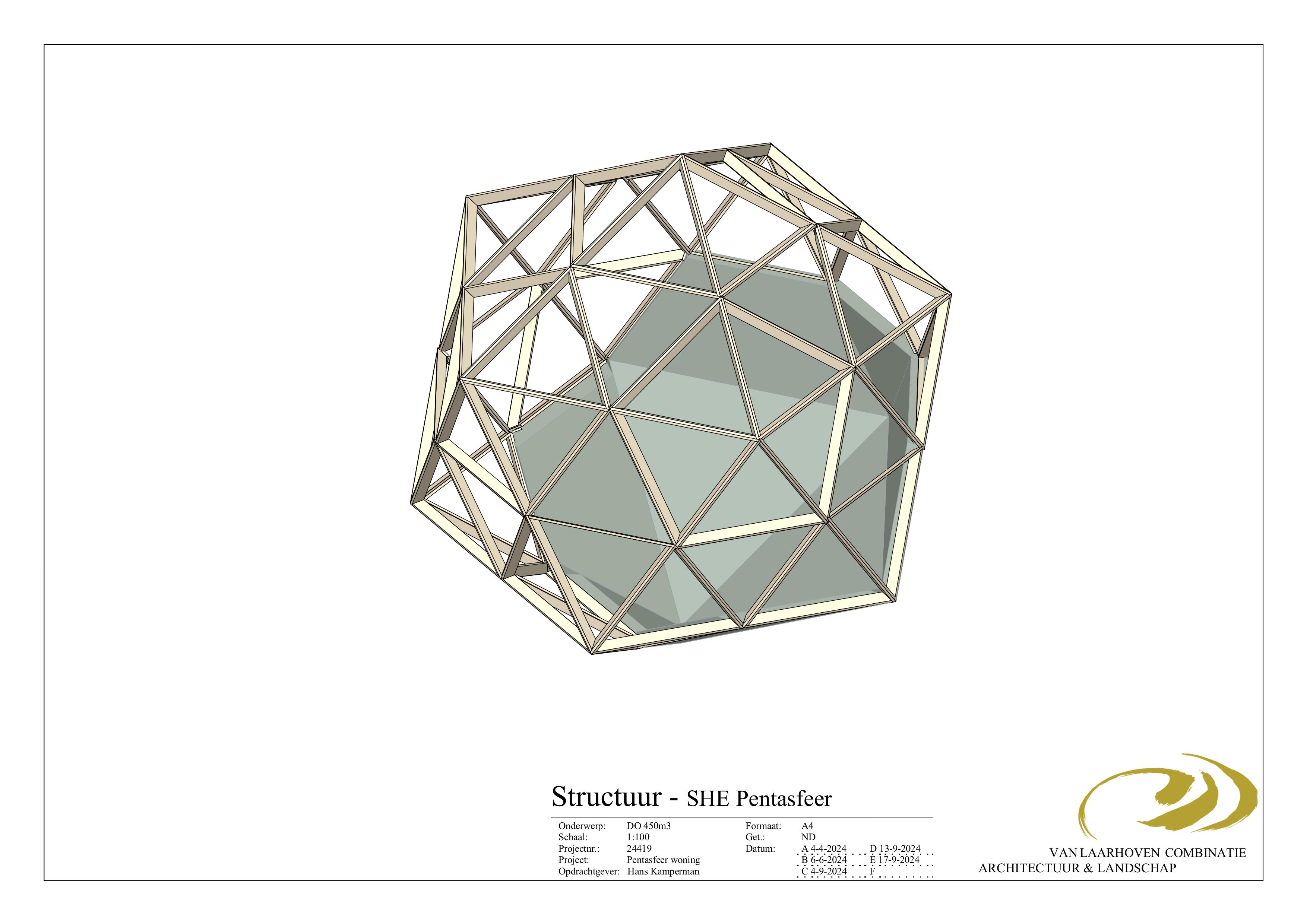Door in de vijfhoek van de Pentasfeer 5 driehoeken van gelijke grote te plaatsen ontstaat in de vijfhoek een ster, door alle vijfhoeken stervormig te maken ontstaat een constructie die bestaat uit allemaal dezelfde driehoeken waarbij de energetische eigenschappen zoals bovenomschreven gehandhaafd blijven. Deze nieuwe geometrische vorm die ons toegevallen is noemen wij de SHE-Pentasfeer.