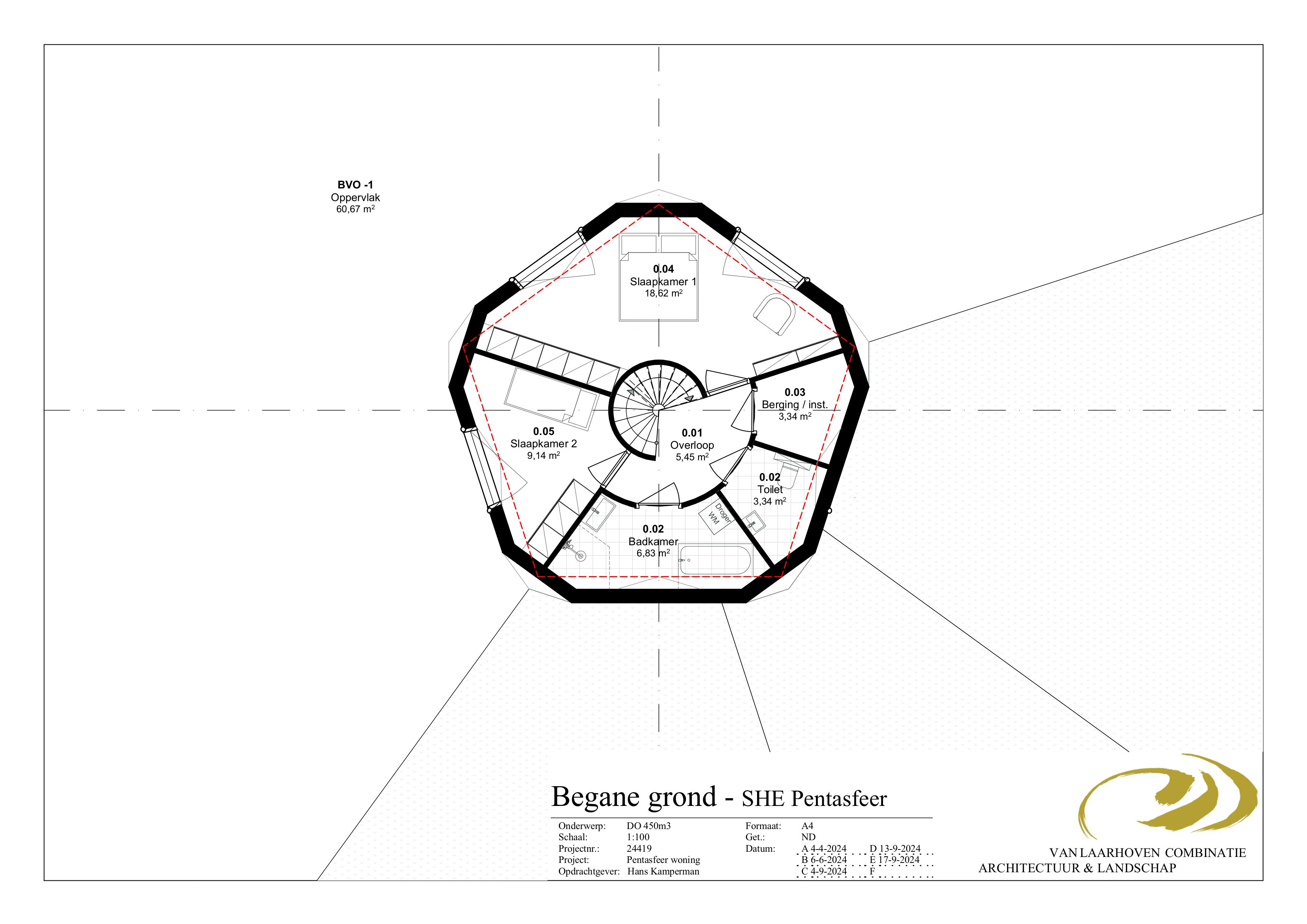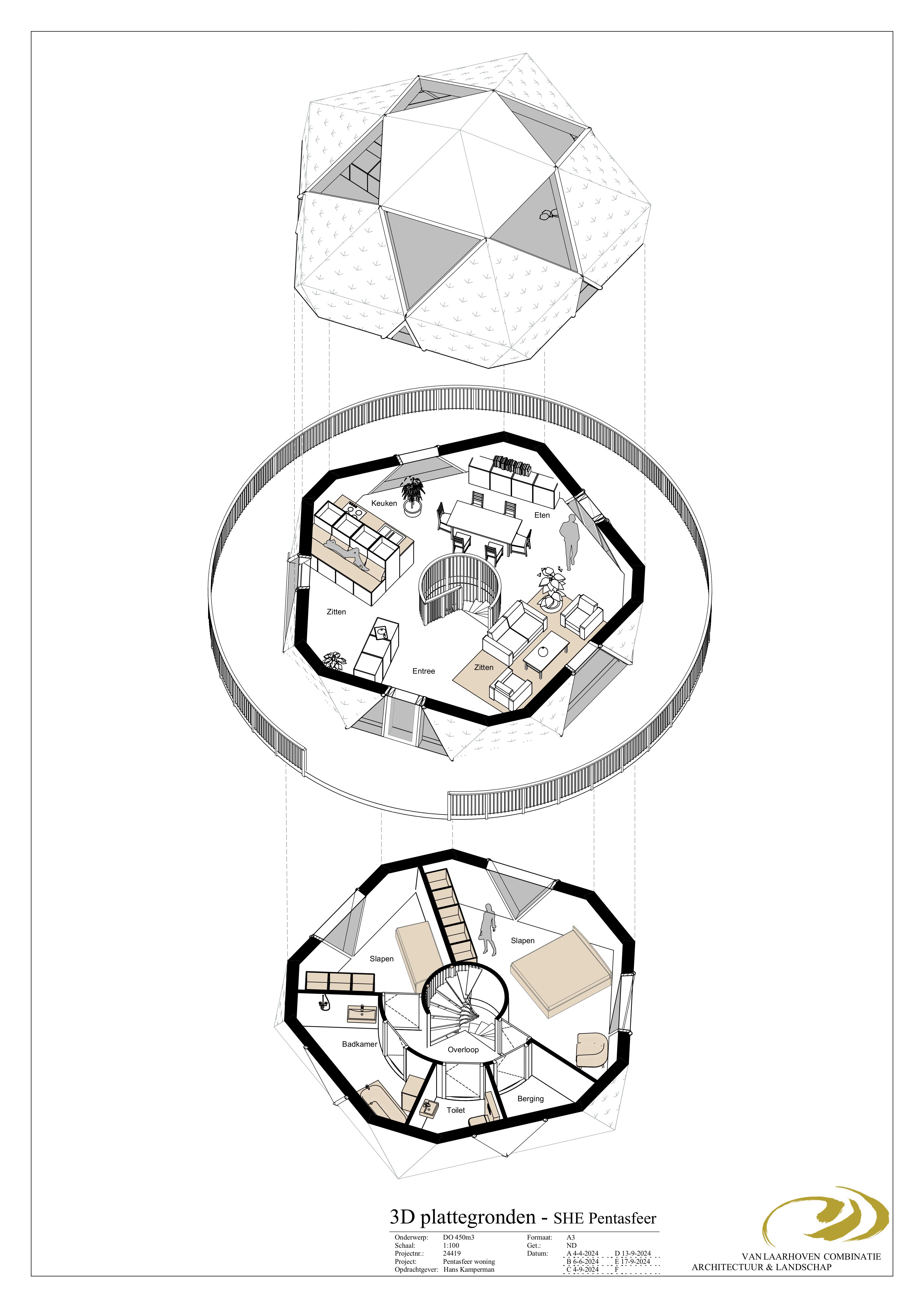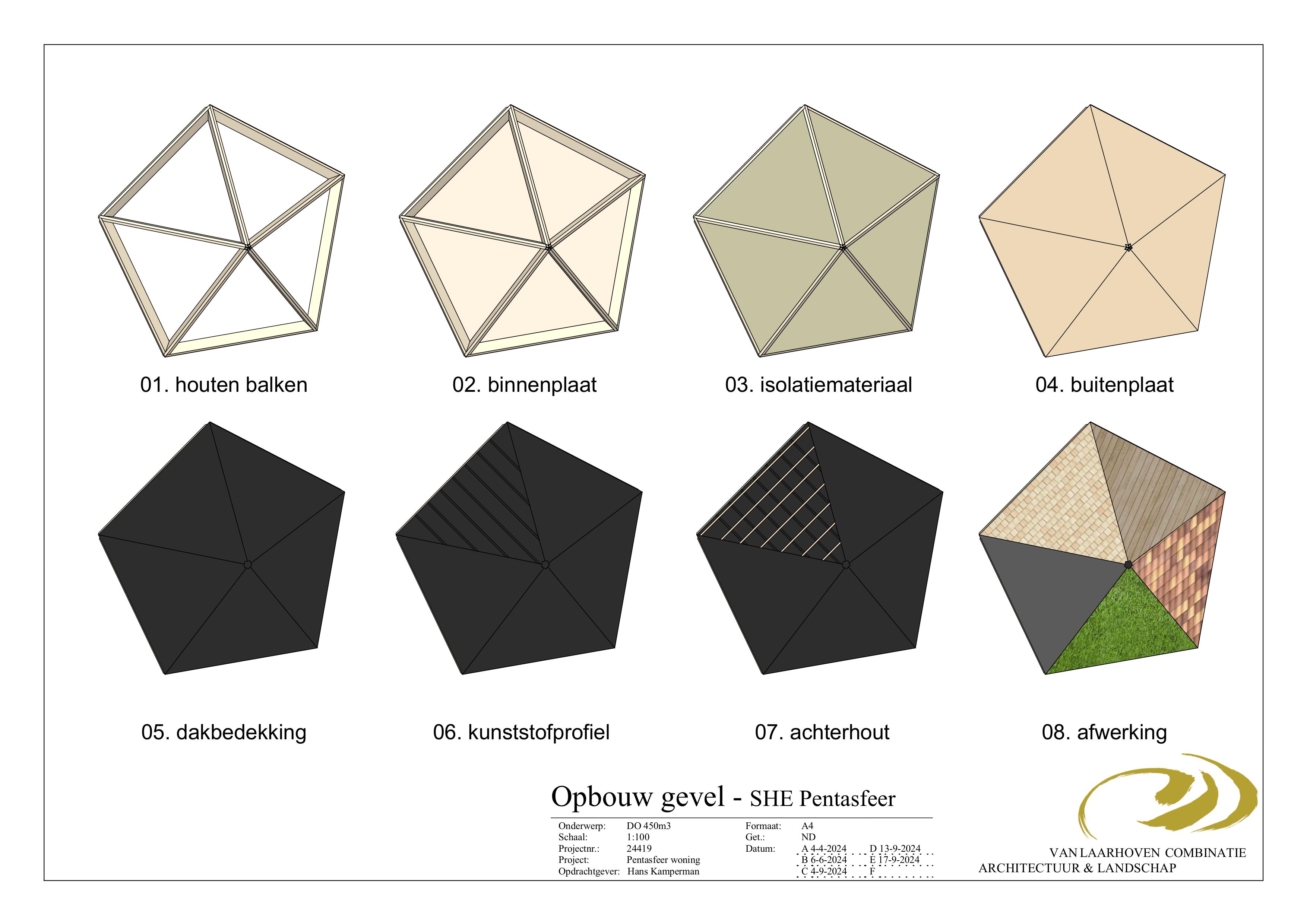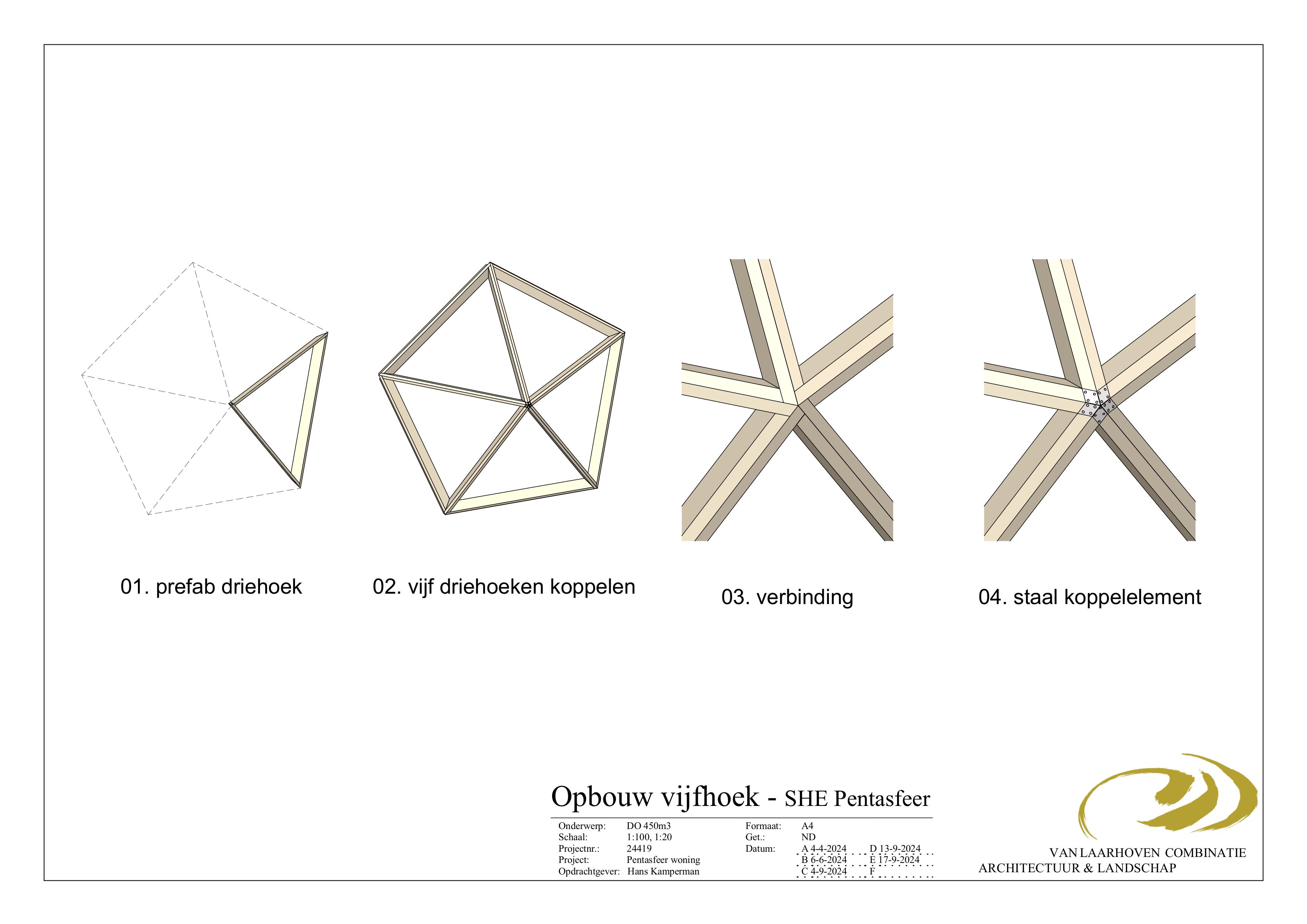 De woning bestaat uit 12 stervormige vijfhoeken opgebouwd uit allemaal driehoeken van 3000 x 3000 mm. De vijfhoeken worden fabrieksmatig gefabriceerd van vezelhennep en kant en klaar op de bouwplaats afgeleverd, waardoor de bouwtijd tot enkele dagen wordt beperkt.