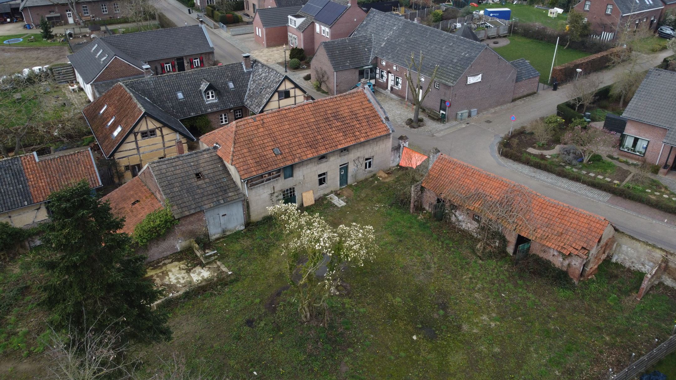Vanuit de schets van de opdrachtgever en bijhorende wensen zijn er verschillende mogelijkheden onderzocht. Alle woningen staan naast elkaar in een carré. Deze begint vanaf de plek waar de voormalige boerderij stond en eindigt nabij de oude tuinmuur. De carré wordt één keer onderbroken om een toegang te krijgen naar het achterliggende terrein. Vanuit de binnenplaats die de carré omarmt loopt de semi-verharde bestrating naar de gezamenlijke schuur, moestuin en parkeerplekken. Op de binnenplaats is er genoeg ruimte om te zitten en voor groen. Er is zo veel mogelijk groen op het kavel aangebracht waar de bewoners gebruik van kunnen maken. Aan de linkerkant zijn de twee grote woningen geplaatst. Deze staan op de plaats waar de oude boerderij stond. Onderin komen de kleinere woningen die zowel een verbinding hebben met de binnenplaats als met het landschap. Ten slotte aan de rechterzijde de middel grote woningen. Deze zijn losgetrokken van de kavelgrens met de buren, zodat er ruimte is voor een rustige plek achter de woningen.