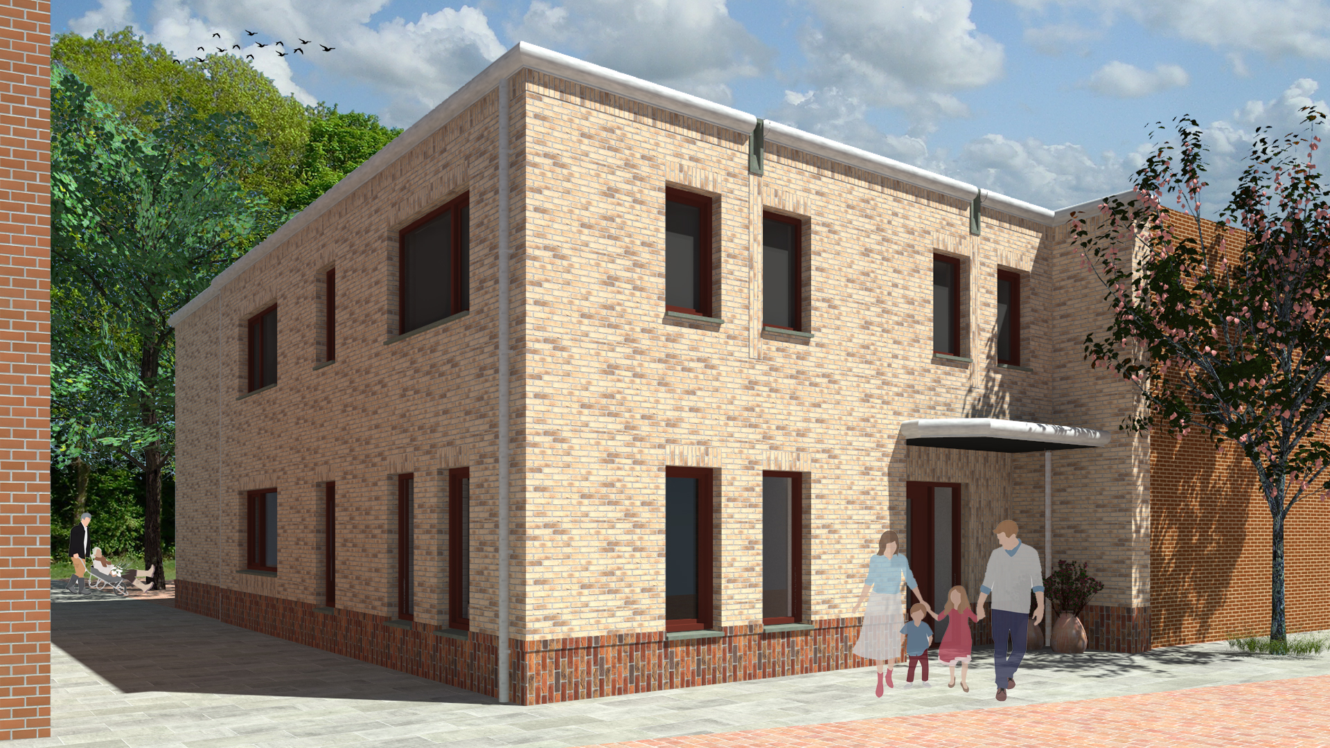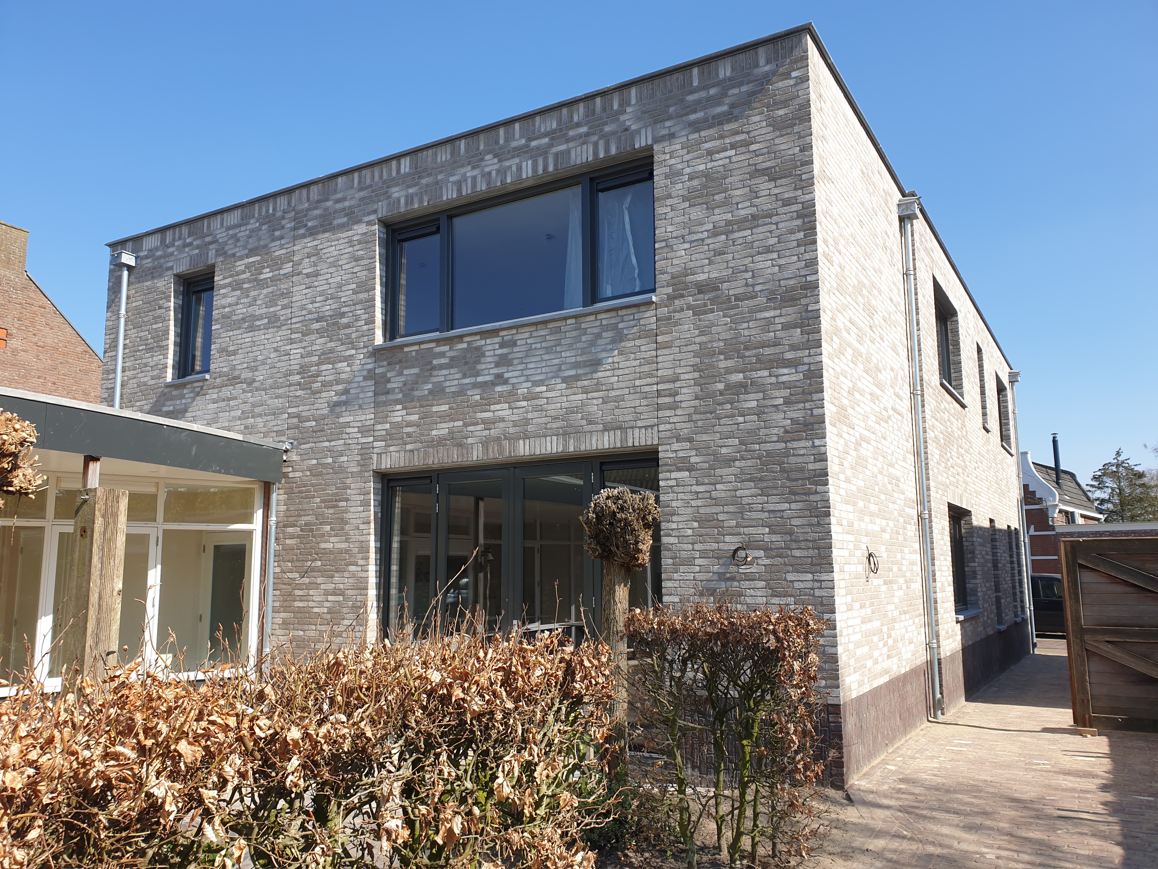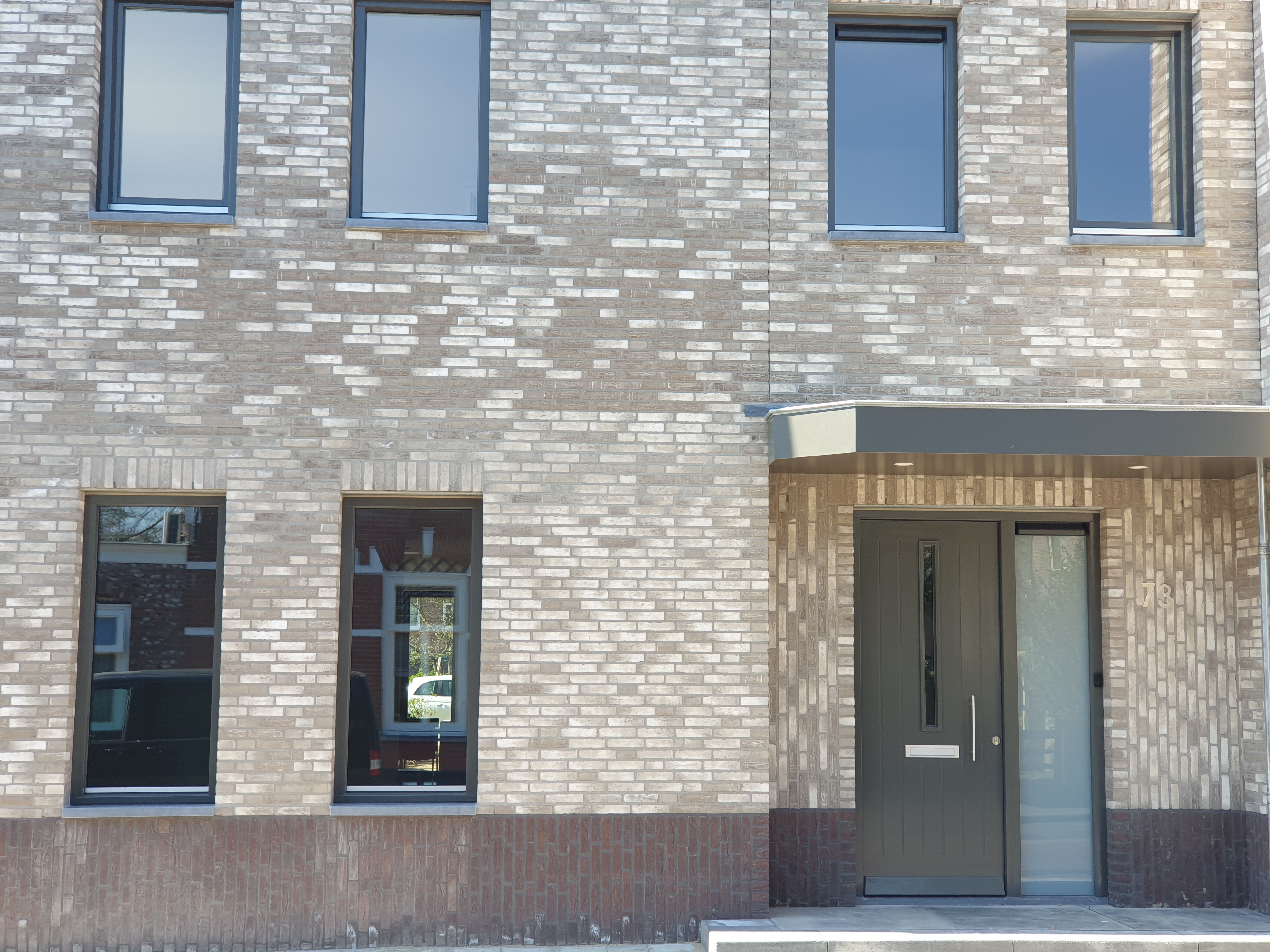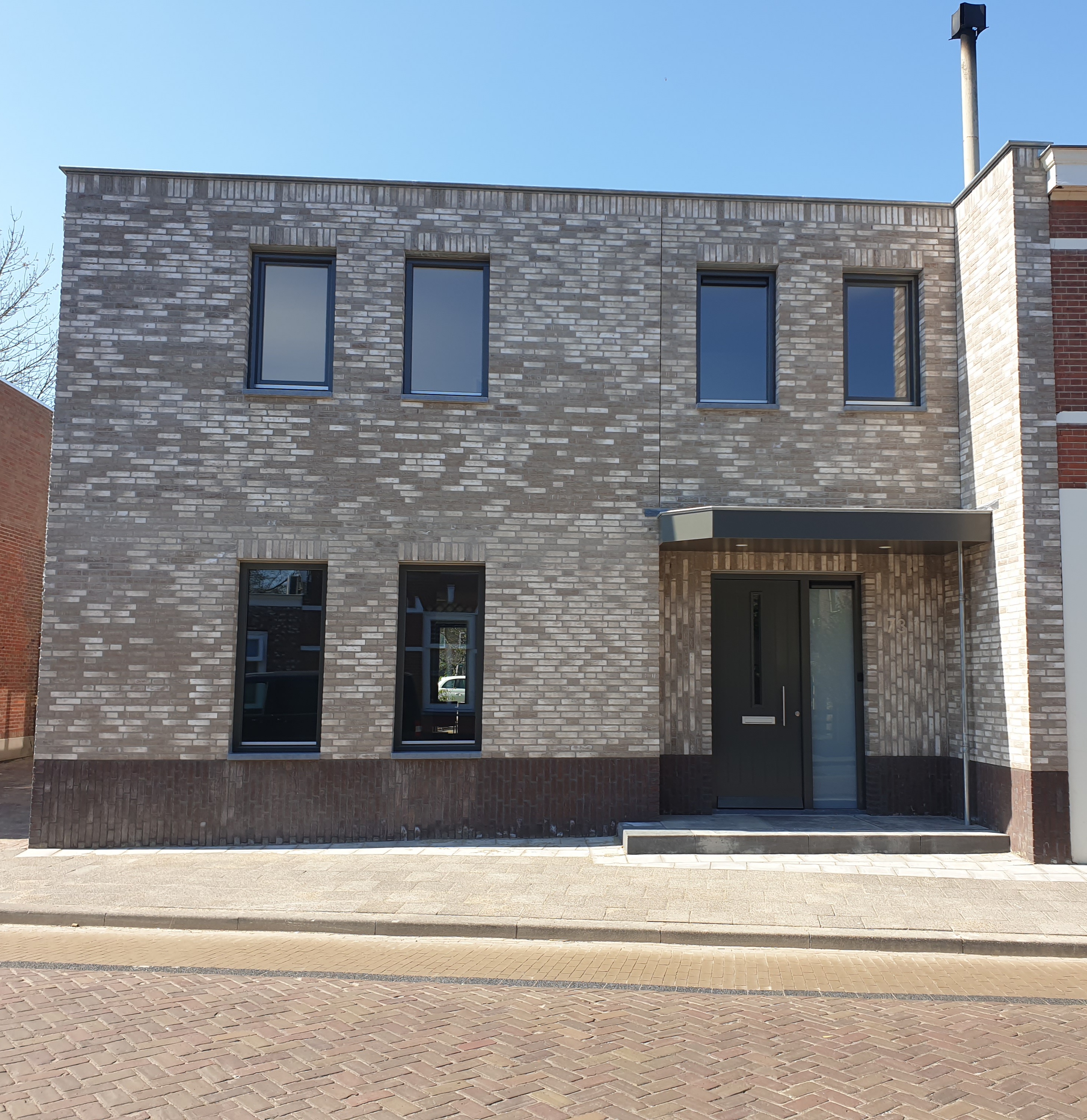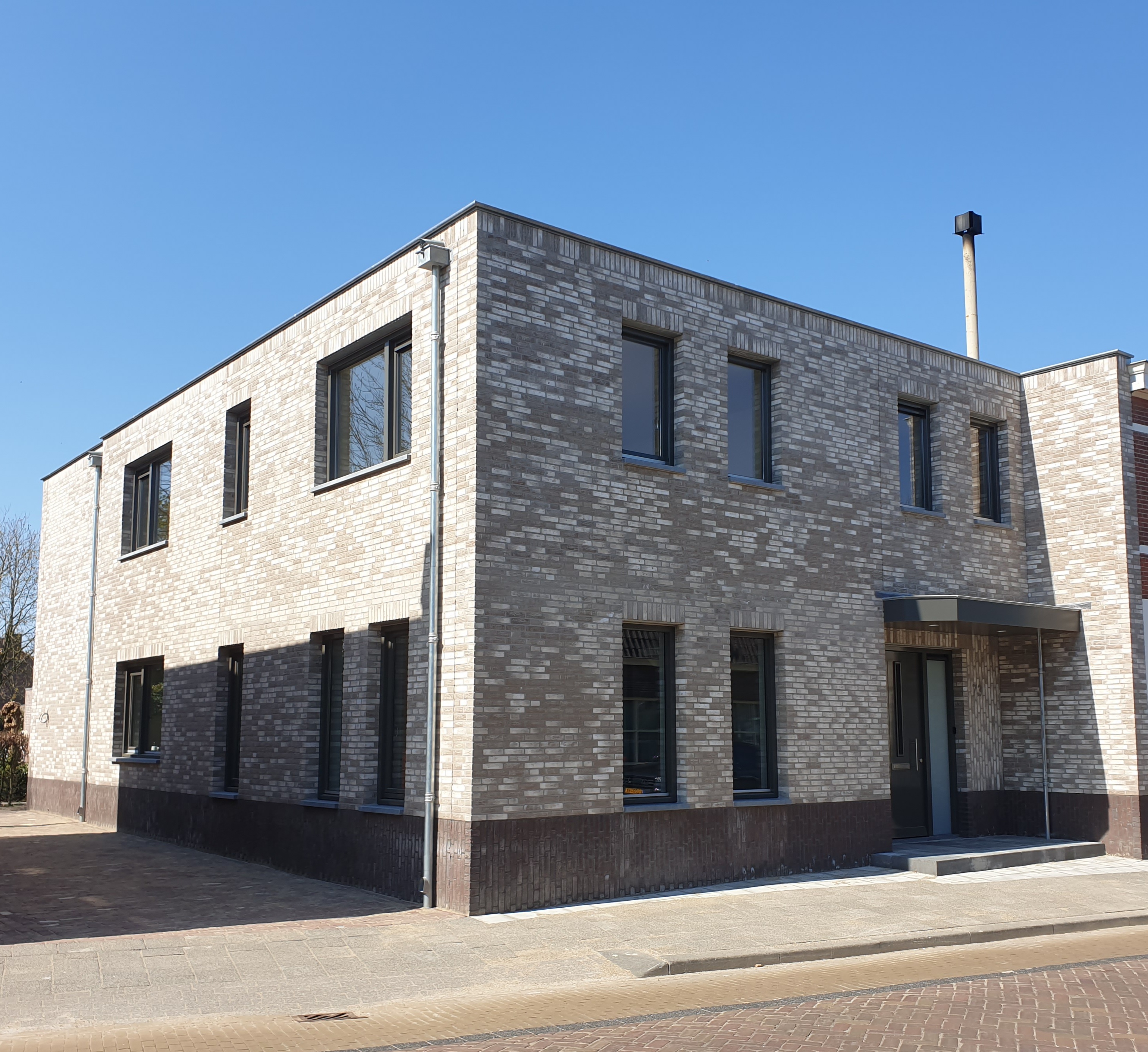 Dit project bevindt zich in een straat met een dorps karakter. De bestaande woning is onderdeel van een aaneengesloten straatbeeld. De bestaande woning wordt compleet gestript, alleen de dragende onderdelen blijven intact. De woning wordt verduurzaamd en krijgt een nieuw uiterlijk. Het sombere karakter van de bestaande toestand krijgt een frisse aanpassing door het kleur- en materiaalgebruik. Door subtiele details toe te voegen zoals een verspringend metselverband, rollagen, een uitgesproken dakrand en spuwers krijgt het gebouw een menselijke maat.
