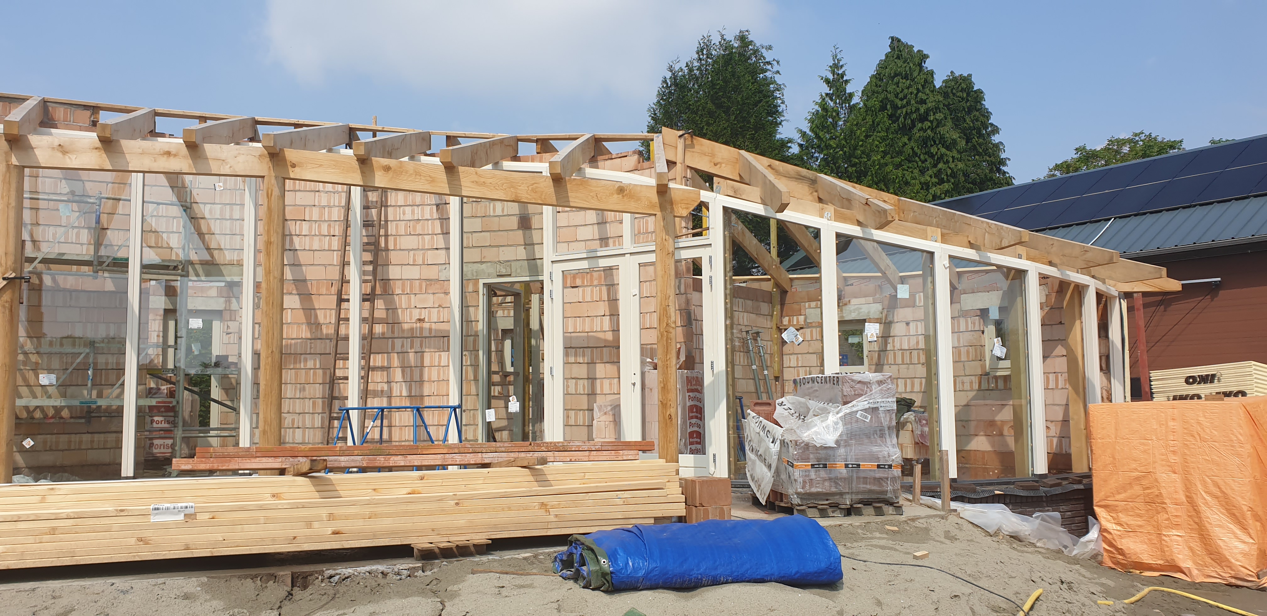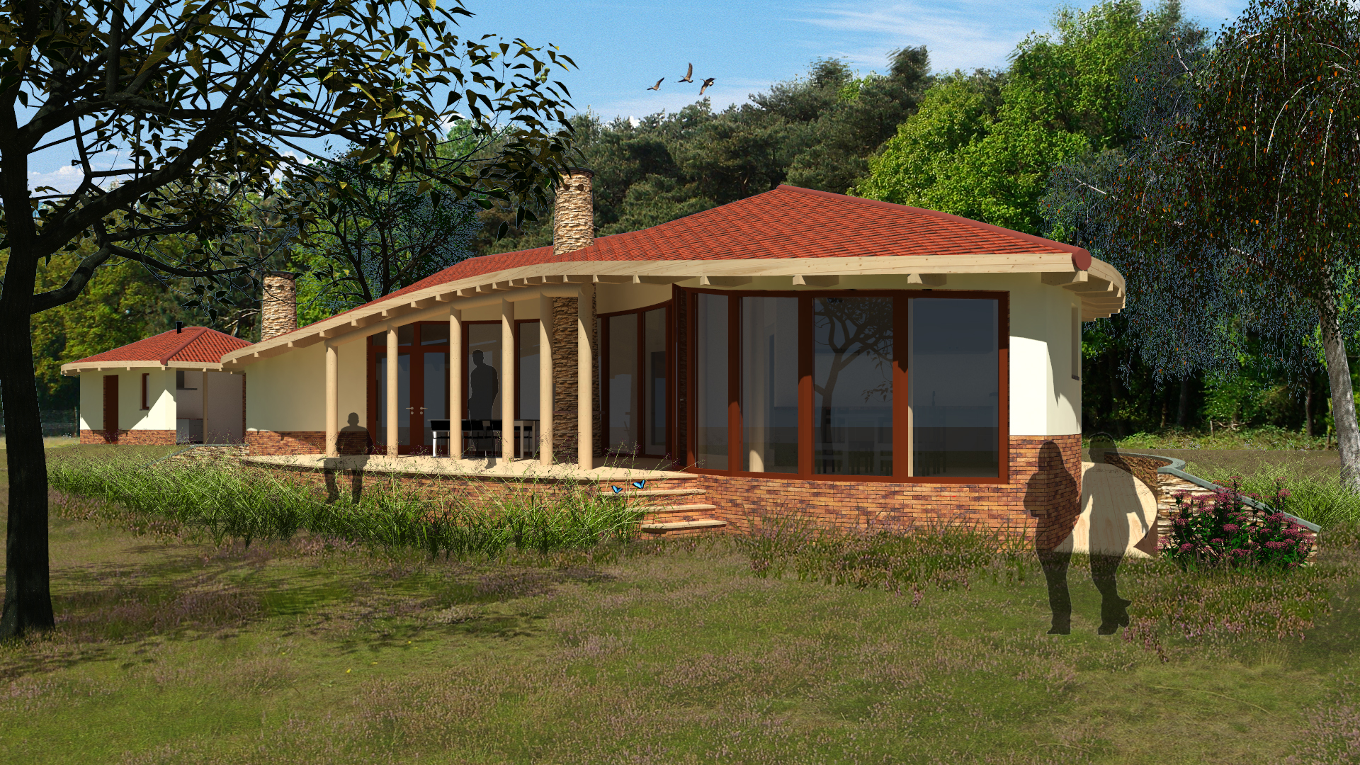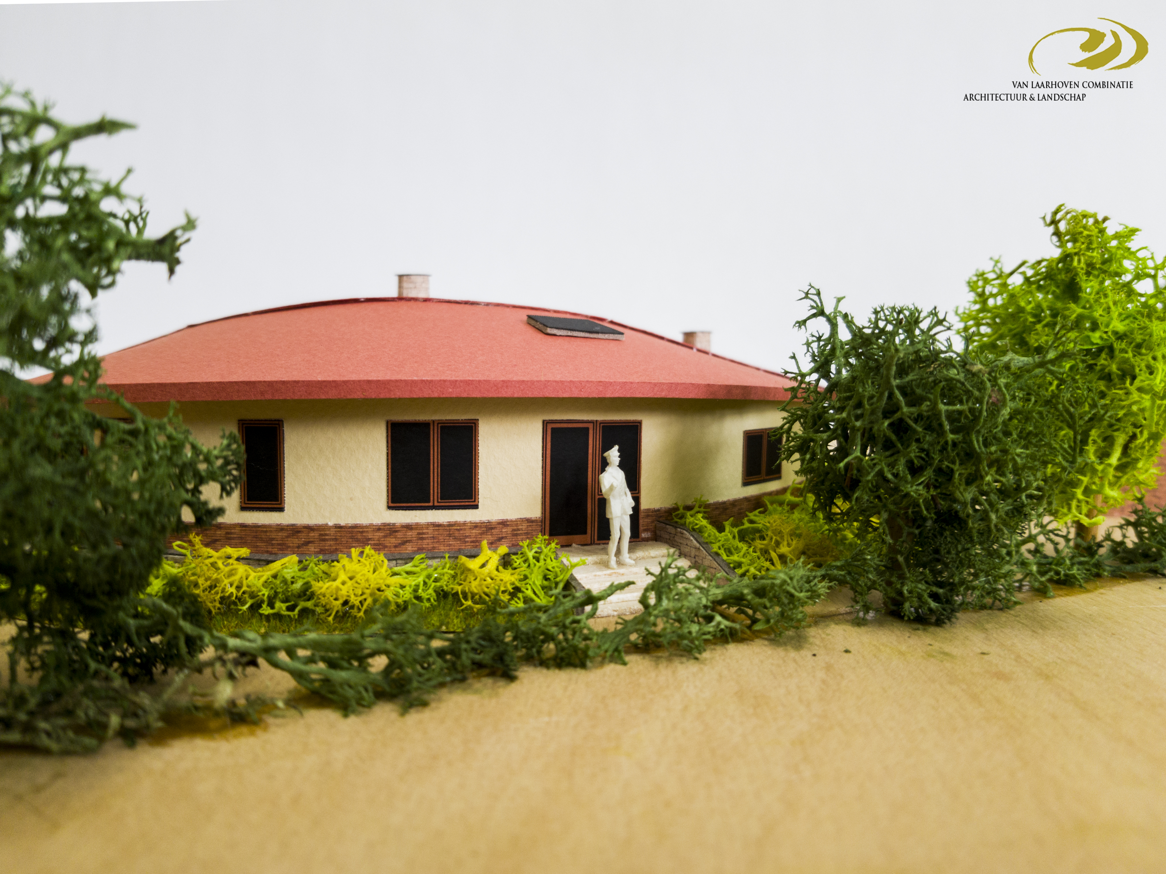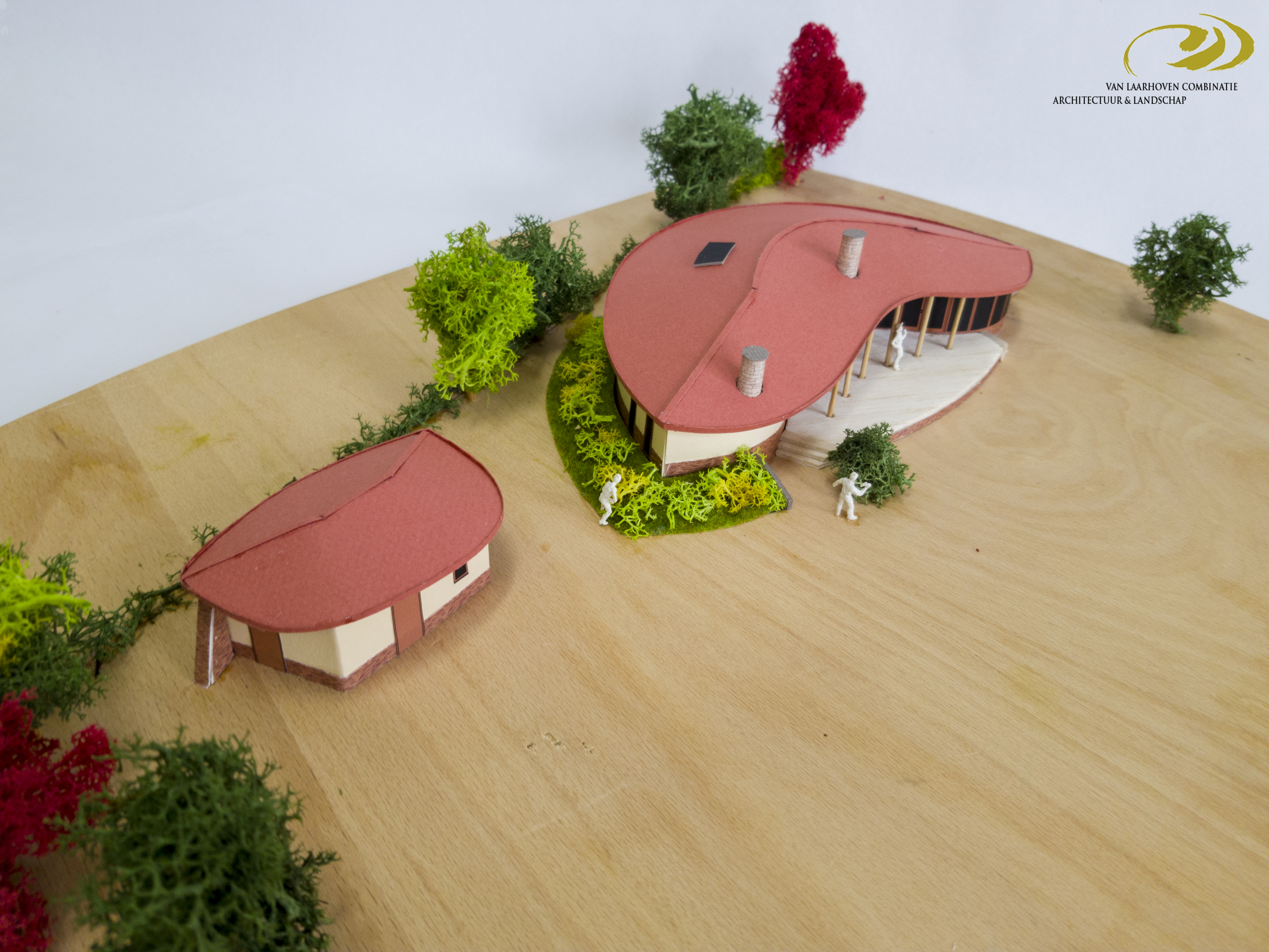 Deze woning bevindt zich in het buitengebied van Breda. De woning situeert zich rond een veranda. Hier kan zowel in de winter als in de zomer gebruik van gemaakt worden. De woonkamer en keuken zijn uit elkaar gehaald en bevinden zich aan de uiteinden van de woning. Hierdoor zijn er duidelijk twee sferen / plekken in de woning. Deze twee ruimtes zijn verbonden door een gang die krult rond de veranda. Hierdoor vormt de veranda als hart van het gebouw. Via de gang is door middel van een blinde deur toegang tot de rustigere vertrekken. De woning is op een terp geplaatst waardoor de woning een stevige plint krijgt. Naast de woning is een bijgebouw met buitenkeuken en opslag. De woning beweegt en vloeit waardoor er een optimale verbinding ontstaat met het landschap.